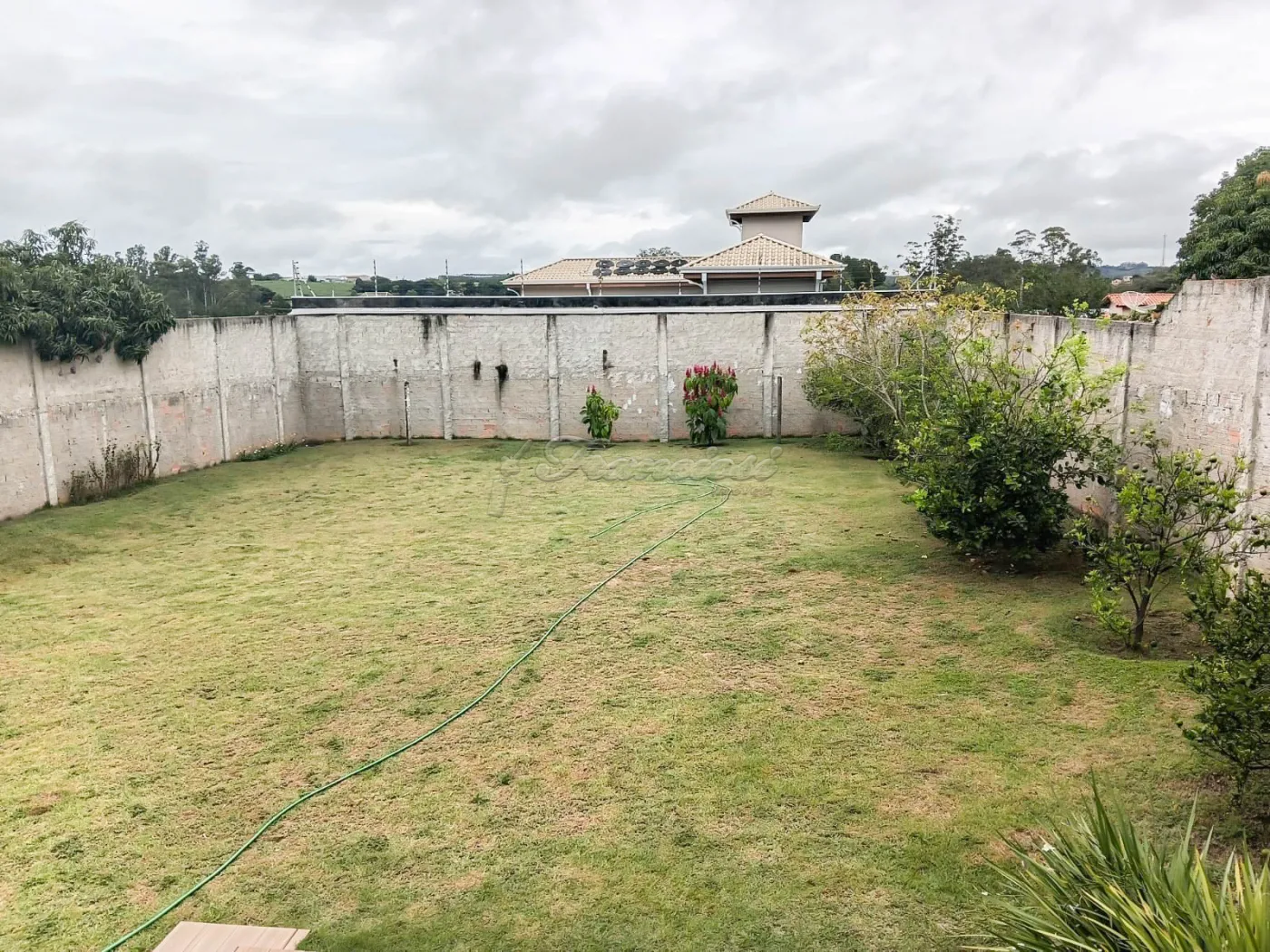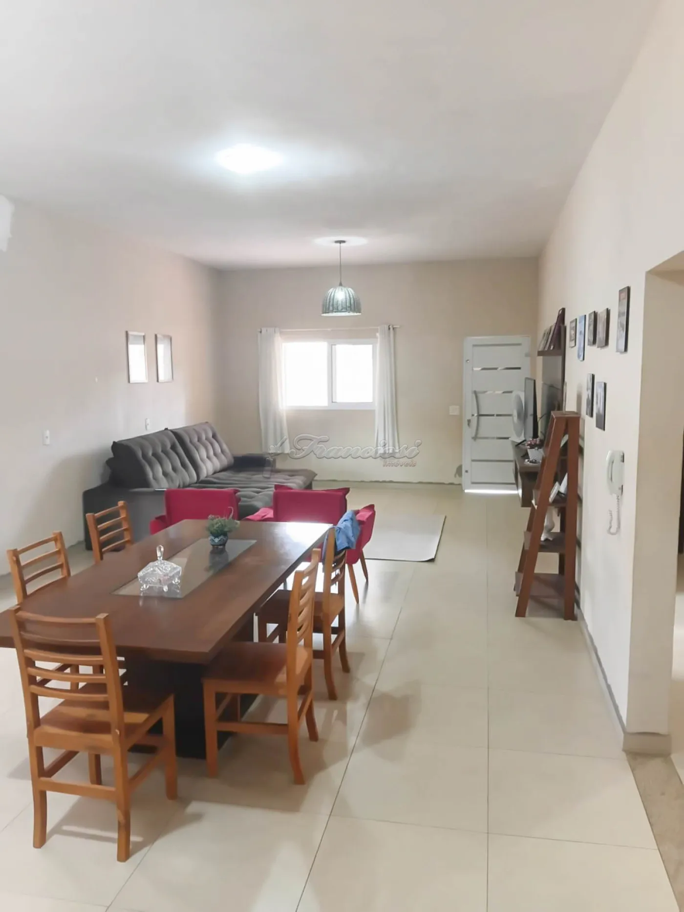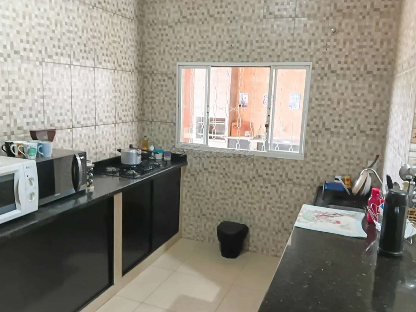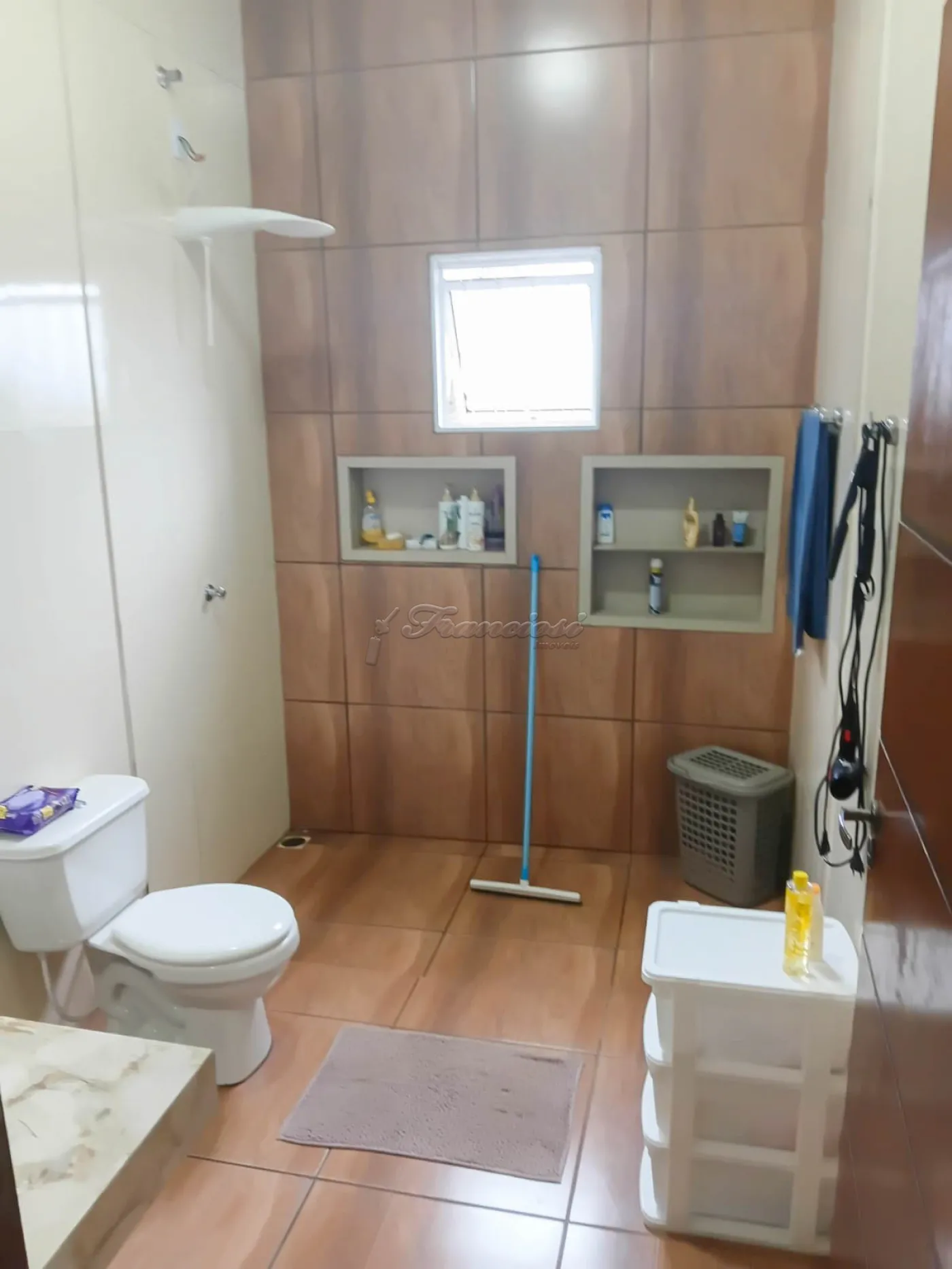 Chácara com 3 dormitórios sendo 1 suíte, sala de estar, cozinha, 1 banheiro social, lavanderia, área de lazer com churrasqueira, quintal com grama, pomar, 1 banheiro externo e garagem coberta para 2 carros.