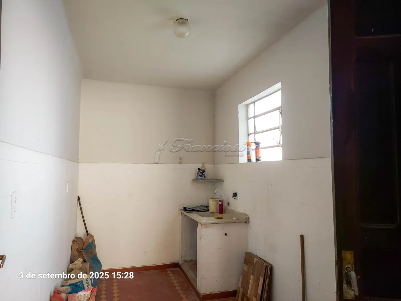 Acabamento: laje, piso frio, cozinha e banheiro azulejados pela metade.