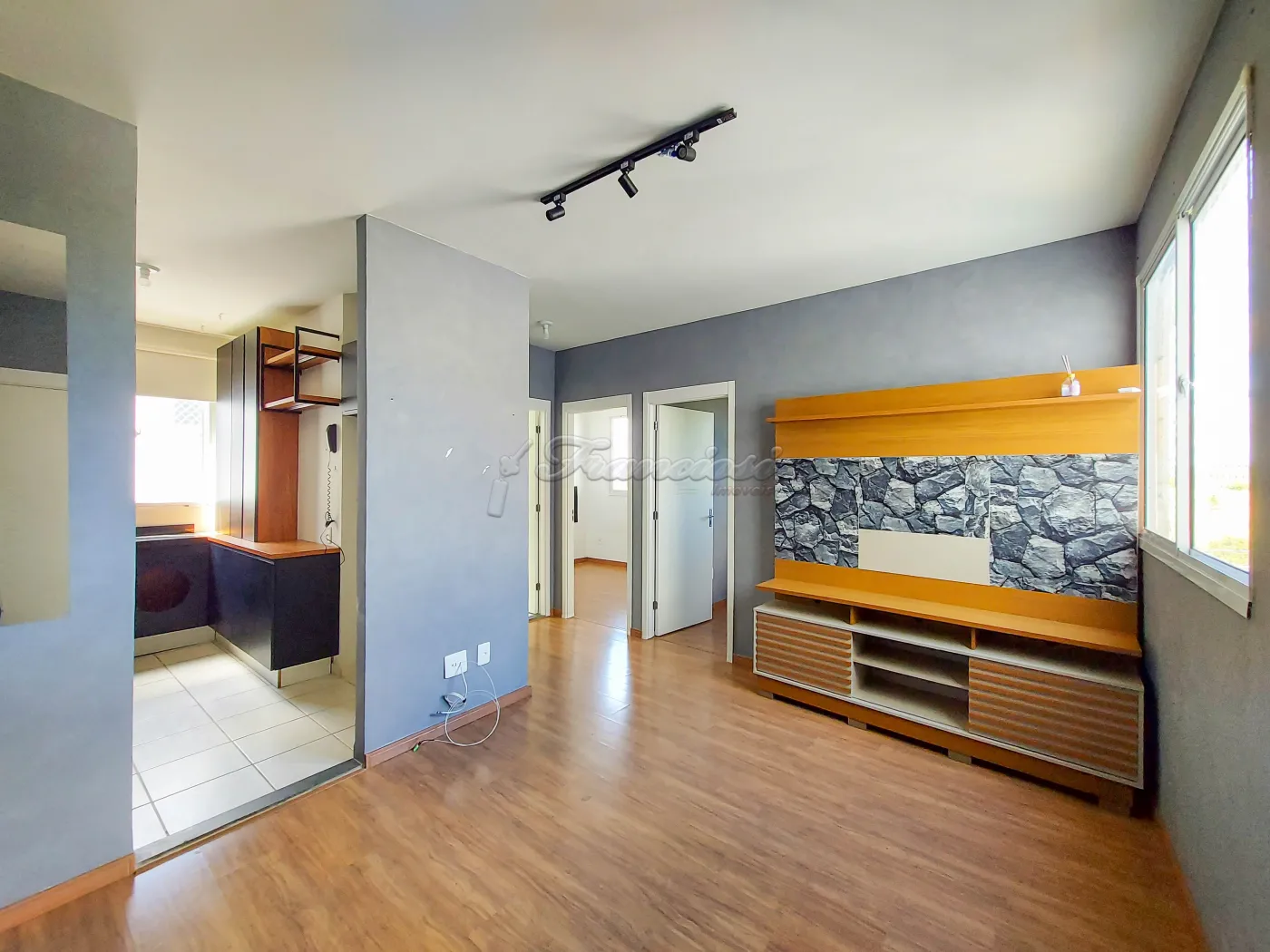 Apartamento com 2 dormitórios, sala com painel de TV, cozinha com armário planejado, 1 banheiro social com box blindex e gabinete, área de serviço e vaga descoberta para 1 carro.