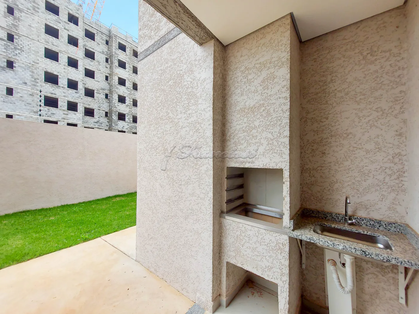 Apartamento com 2 dormitórios sendo 1 suíte, sala de estar, cozinha, 1 banheiro social, área de serviço, varanda gourmet com churrasqueira, quintal com grama e vaga para 1 carro.
