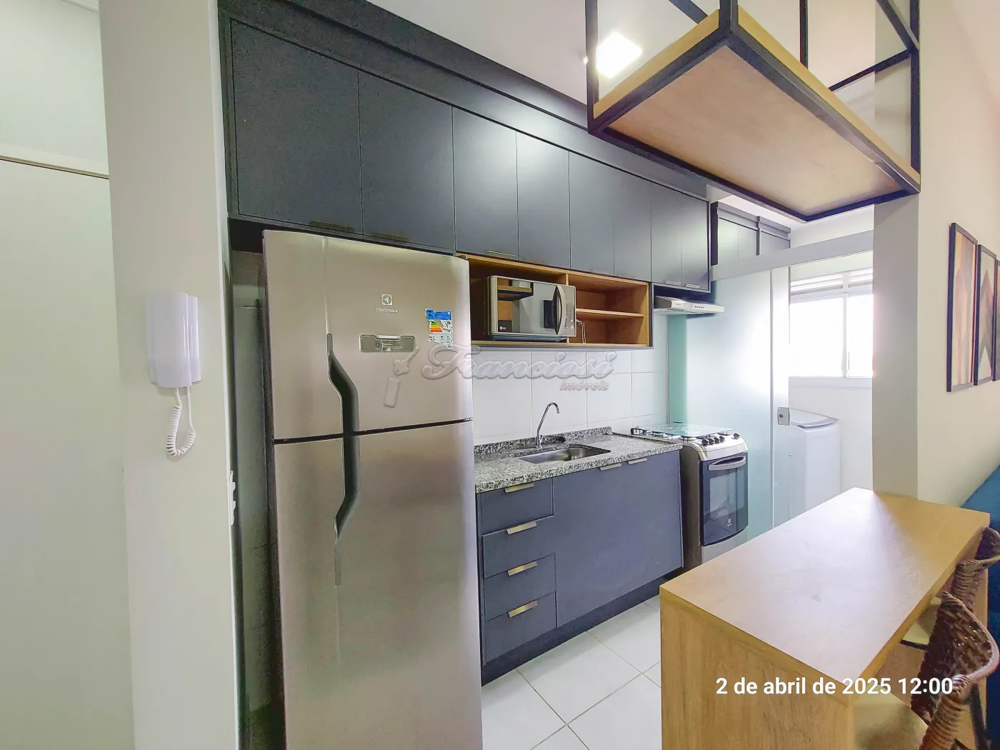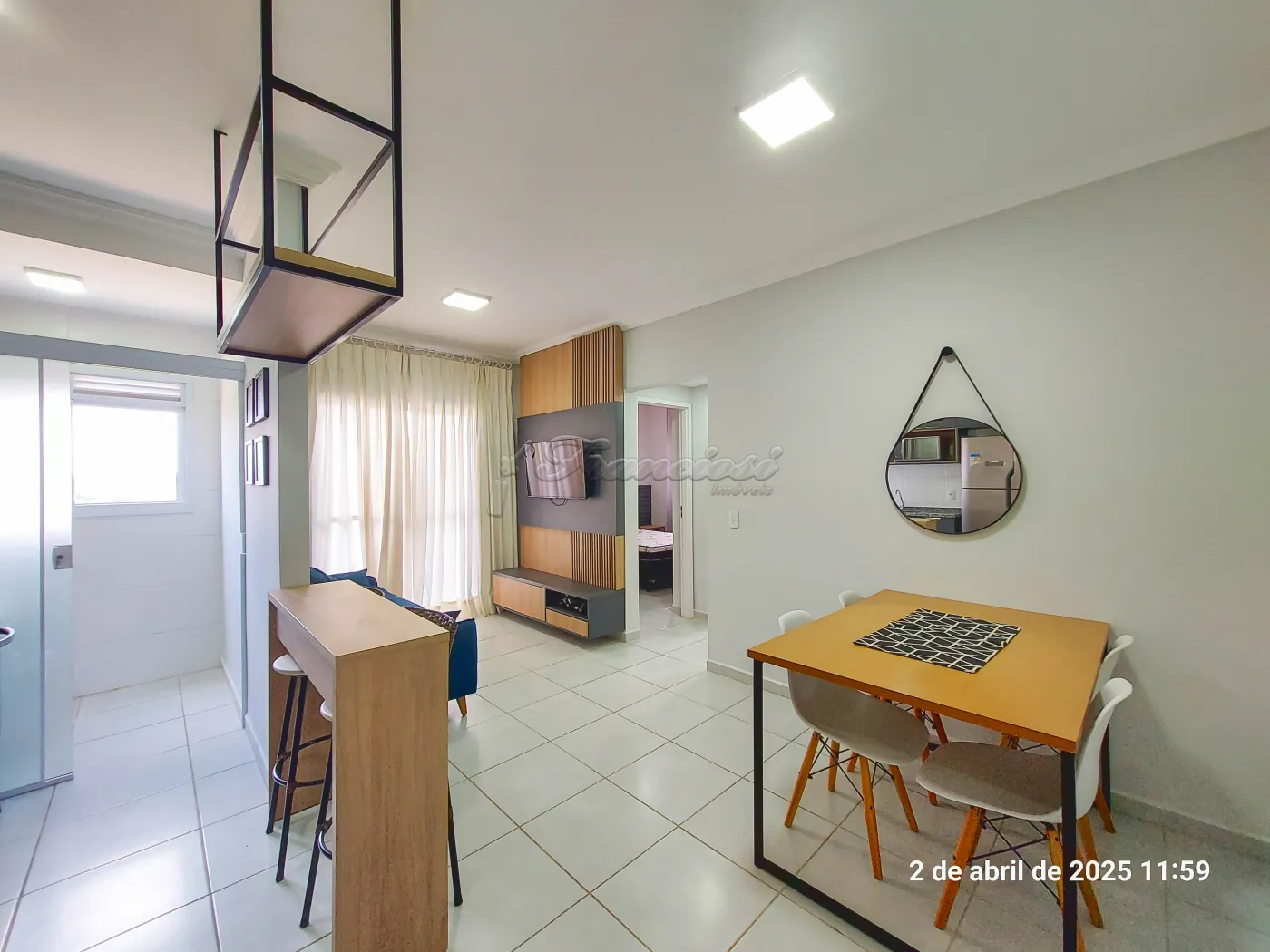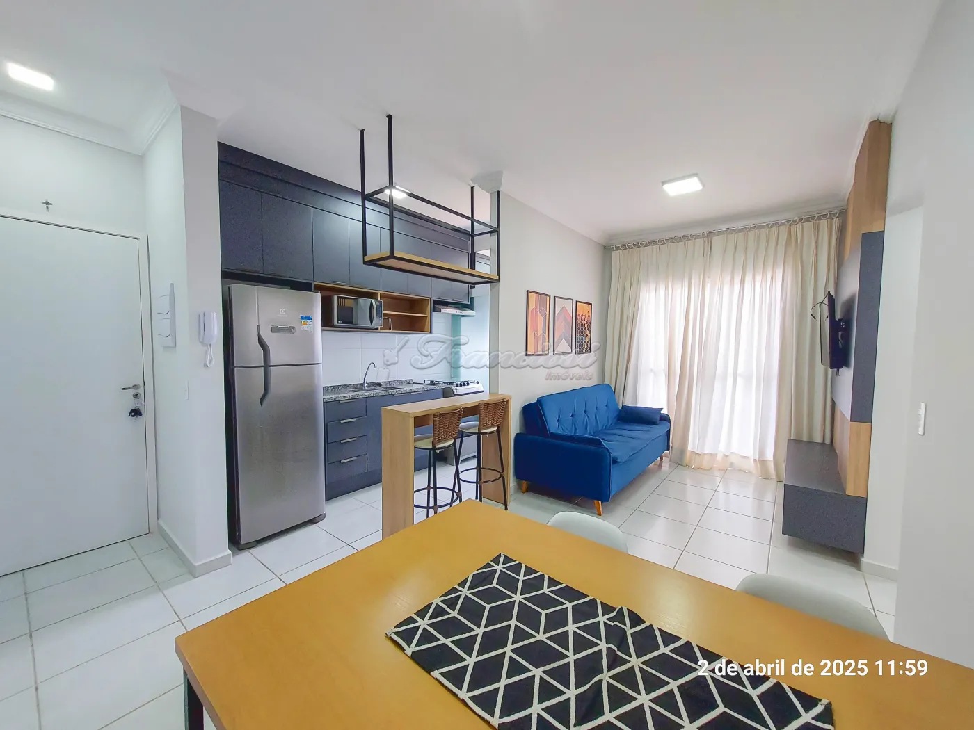 Apartamento com 2 dormitórios sendo 1 completo e o outro com armário, sala de estar 2 ambientes (todo mobiliada), sacada, cozinha completa, 1 banheiro social com armário e box, área de serviço com armário e máquina de lavar, vaga descoberta para 1 carro.