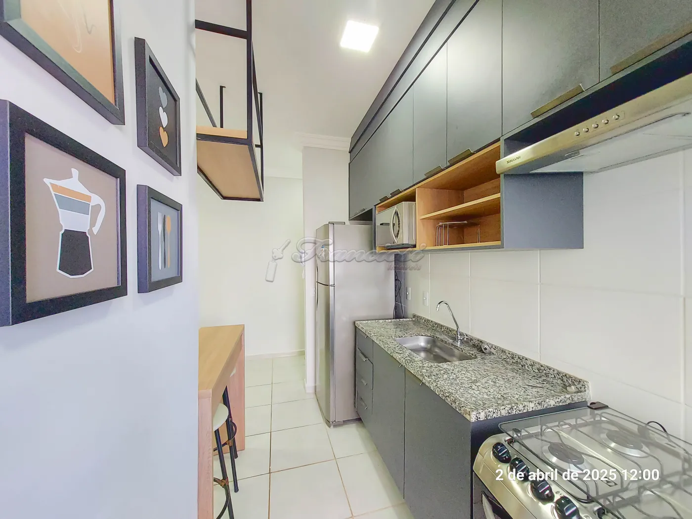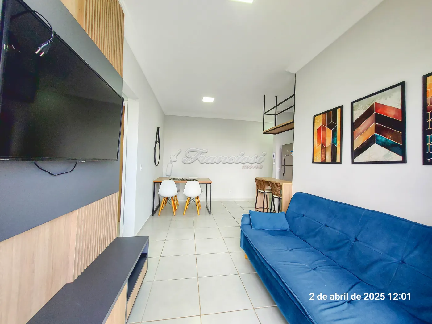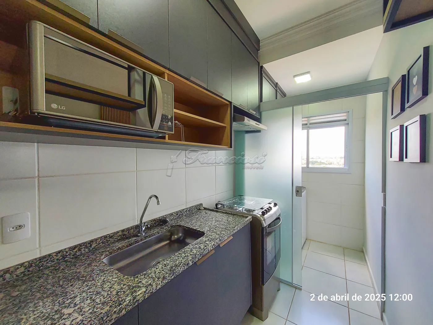 Apartamento com 2 dormitórios sendo 1 completo e o outro com armário, sala de estar 2 ambientes (todo mobiliada), sacada, cozinha completa, 1 banheiro social com armário e box, área de serviço com armário e máquina de lavar, vaga descoberta para 1 carro.