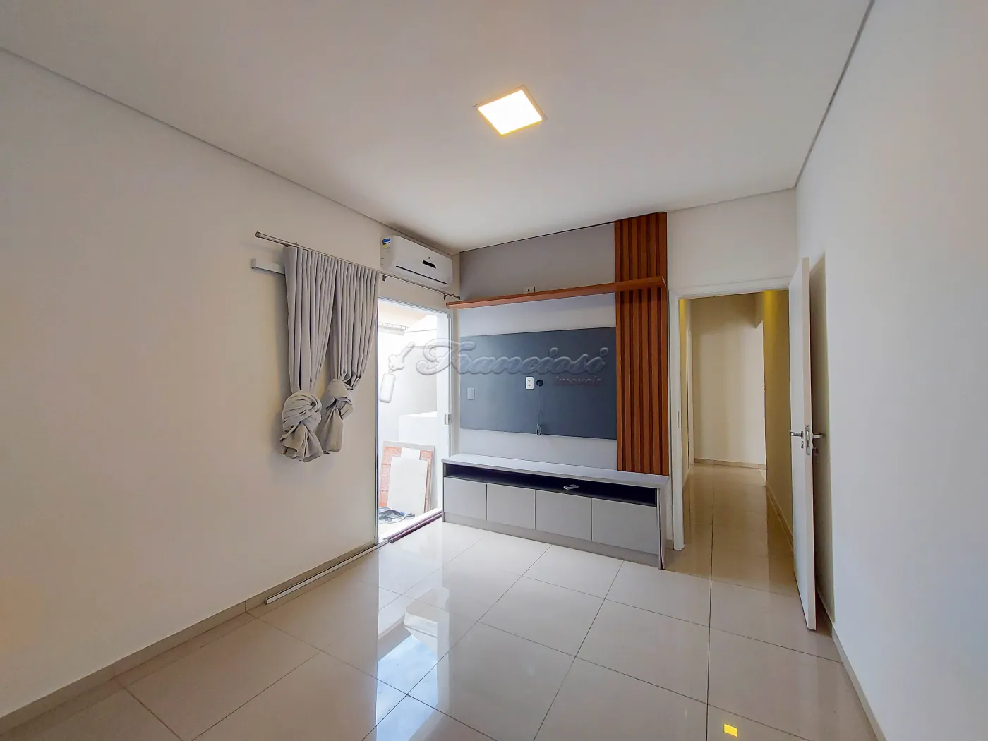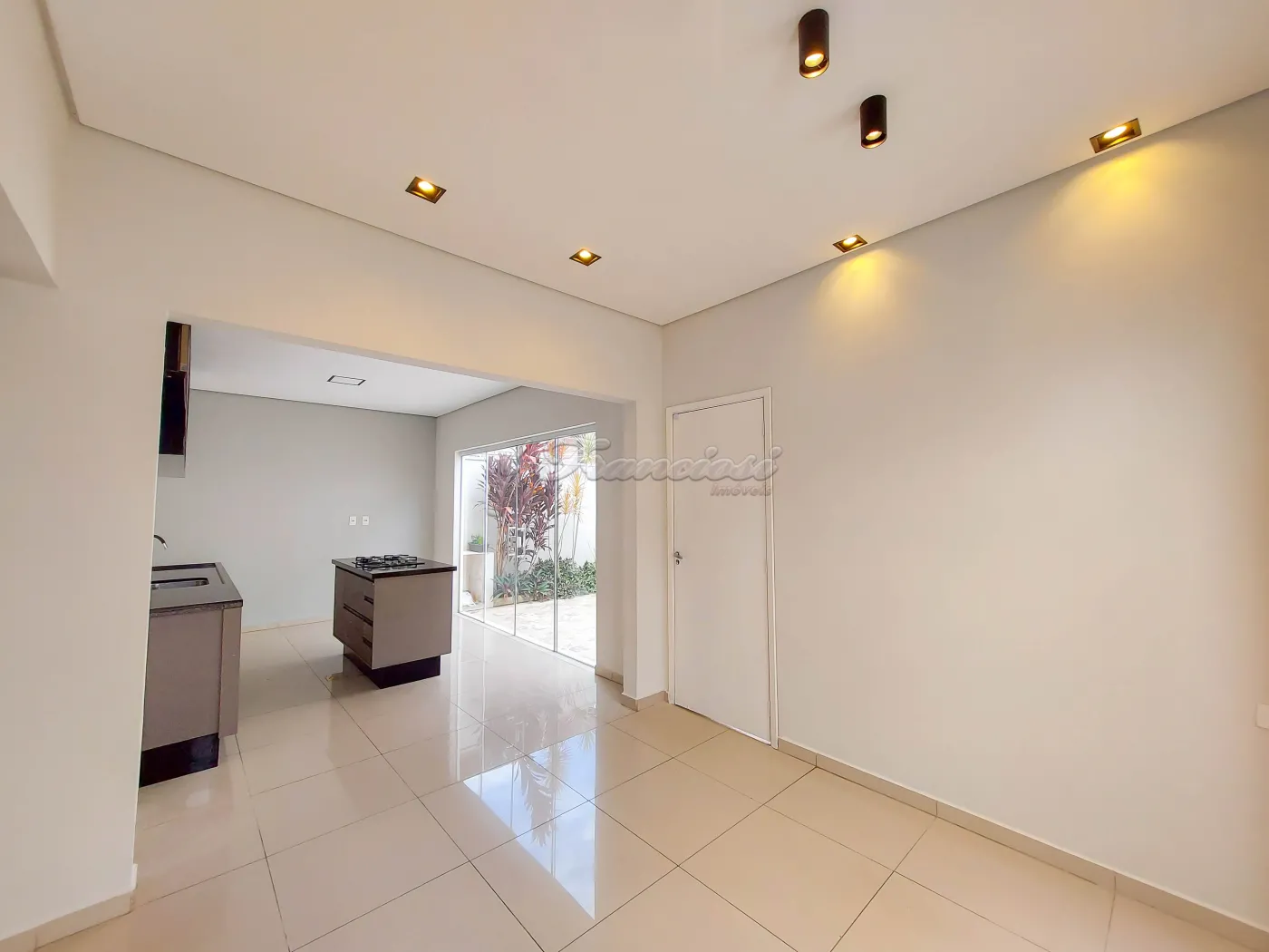 Casa comercial com 2 dormitórios sendo 1 suíte com closet, painel de TV, ar condicionado, sala de estar, cozinha com ilha, cooktop, armários planejados, 1 banheiro social, área de serviço coberta, quintal e garagem coberta para 1 carro.
