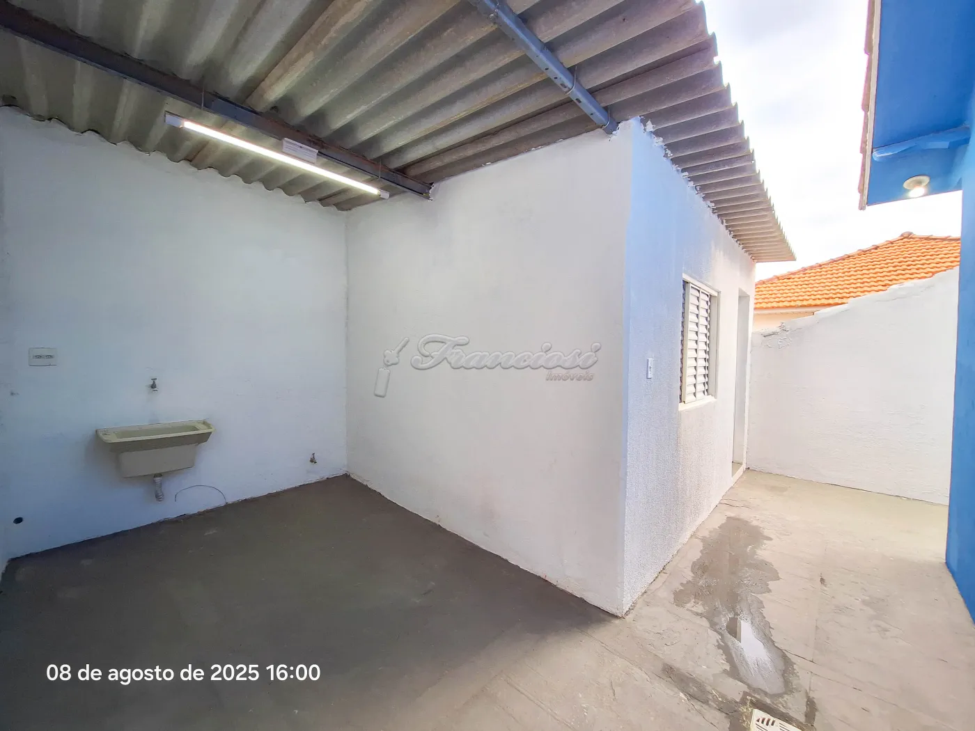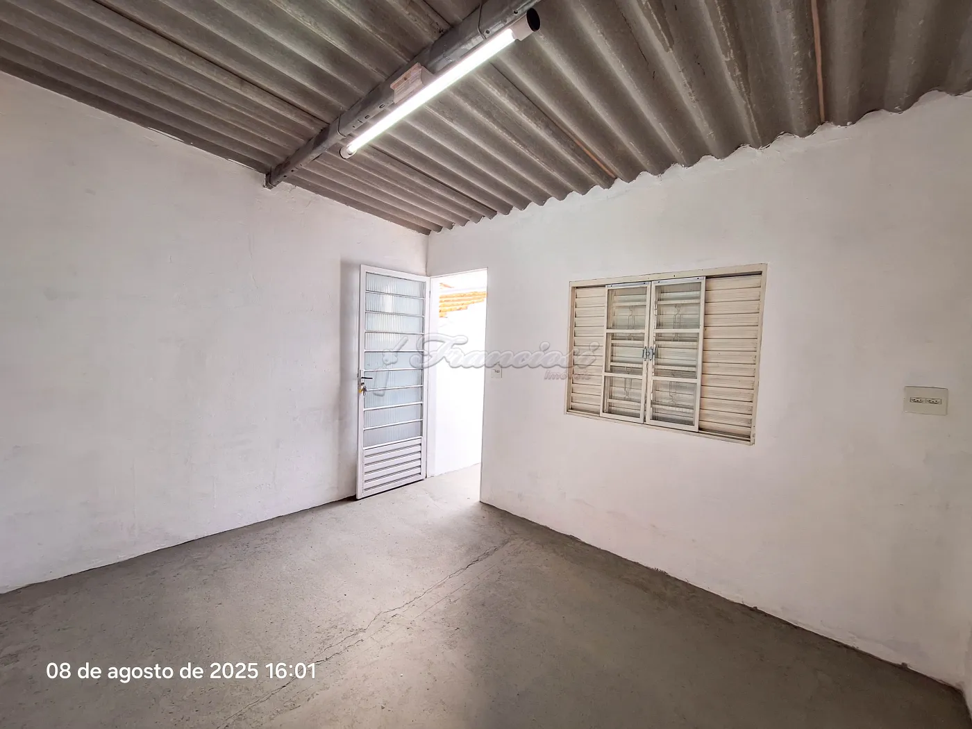 Casa com recepção, 2 salas, cozinha, 1 banheiro social, área de serviço coberta, quintal pequeno cimentado, 1 cômodo nos fundos e garagem coberta para 1 carro.
