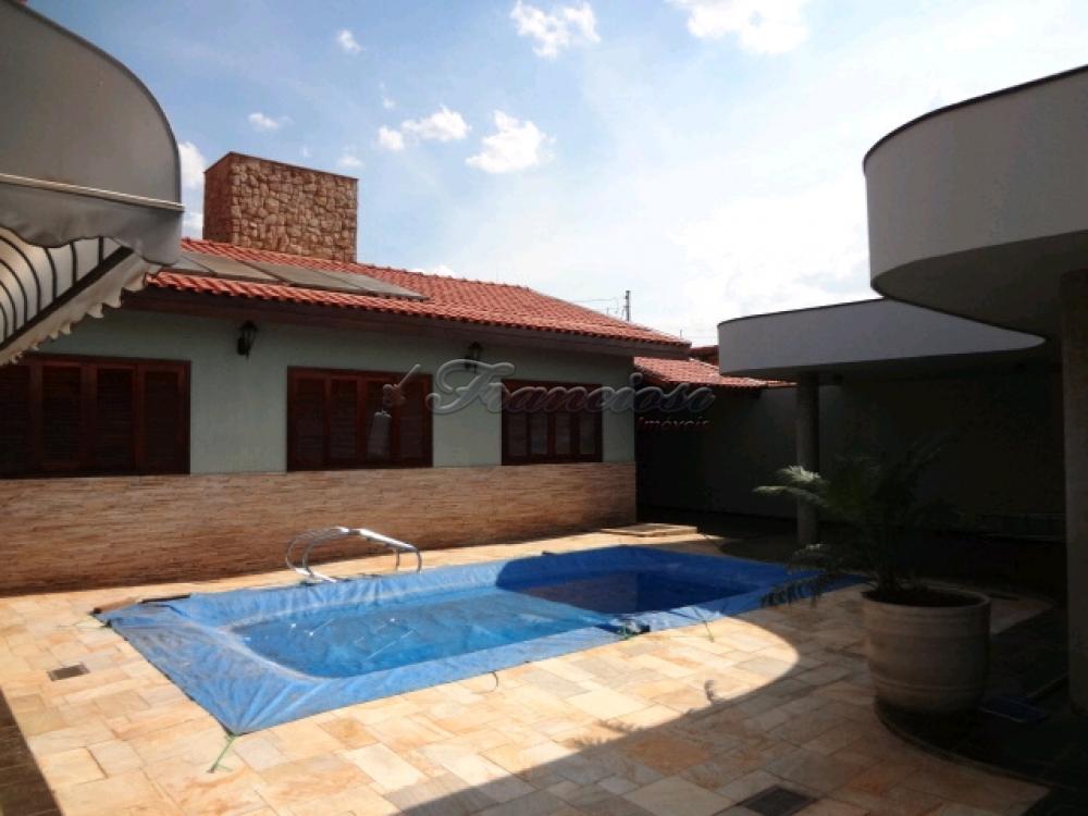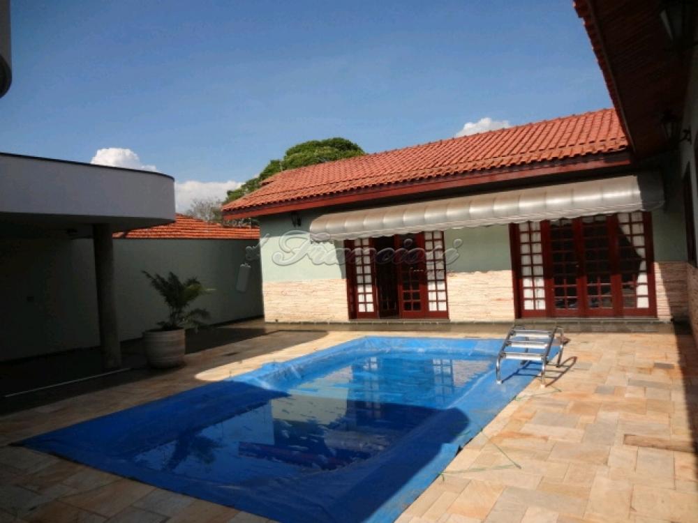 Casa com 3 dormitórios sendo 1 suíte e todos com armário e 1 closet, sala de estar com mezanino, sala de jantar, lavabo, 1 banheiro social com box blindex, copa, cozinha com armário, área de serviço coberta, edícula com 2 banheiros, quintal com 2 quiosques, churrasqueira, piscina, garagem para 4 carros com portão eletrônico. Cerca elétrica. Acabamento: laje, piso frio e piso de madeira.
