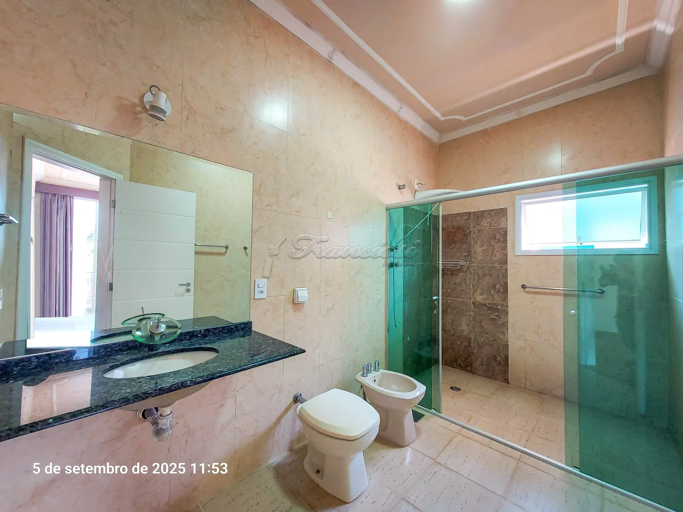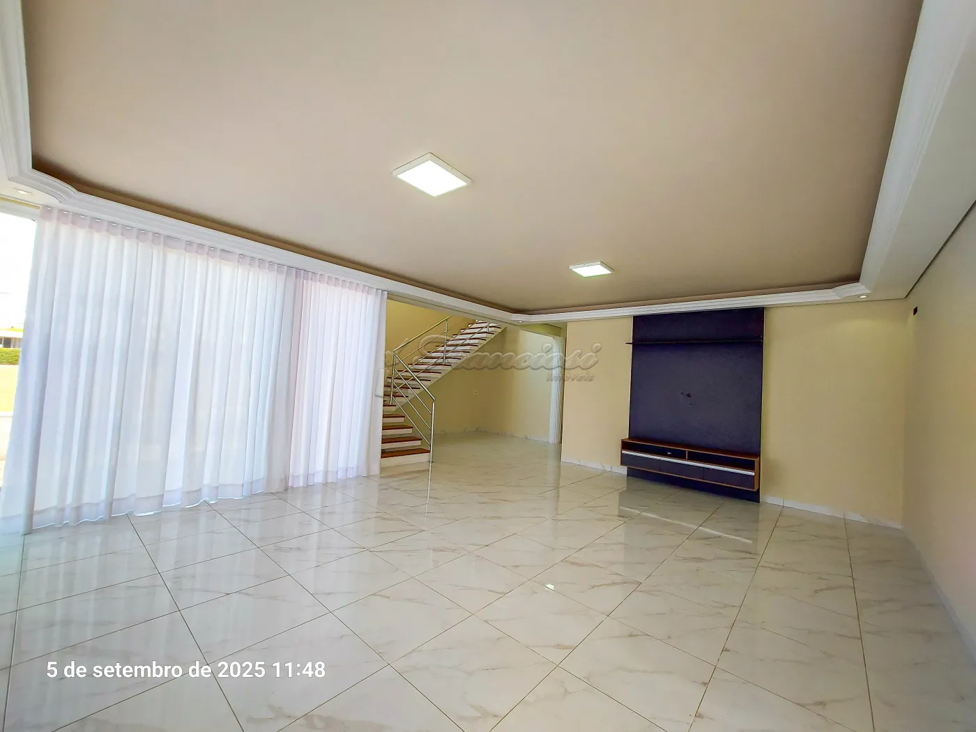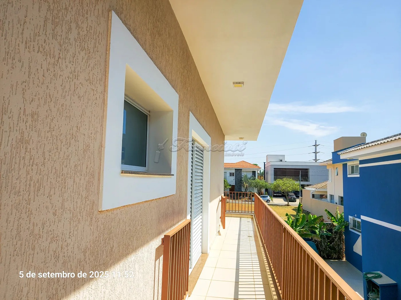 Sobrado com 5 suítes sendo 1 com closet, sacada, sala, sala de TV (piso superior), cozinha com armário planejado e cooktop, 2 despensas, lavanderia, churrasqueira, 1 banheiro externo, terraço, quintal grande com piso e garagem coberta para 5 carros (pequenos).