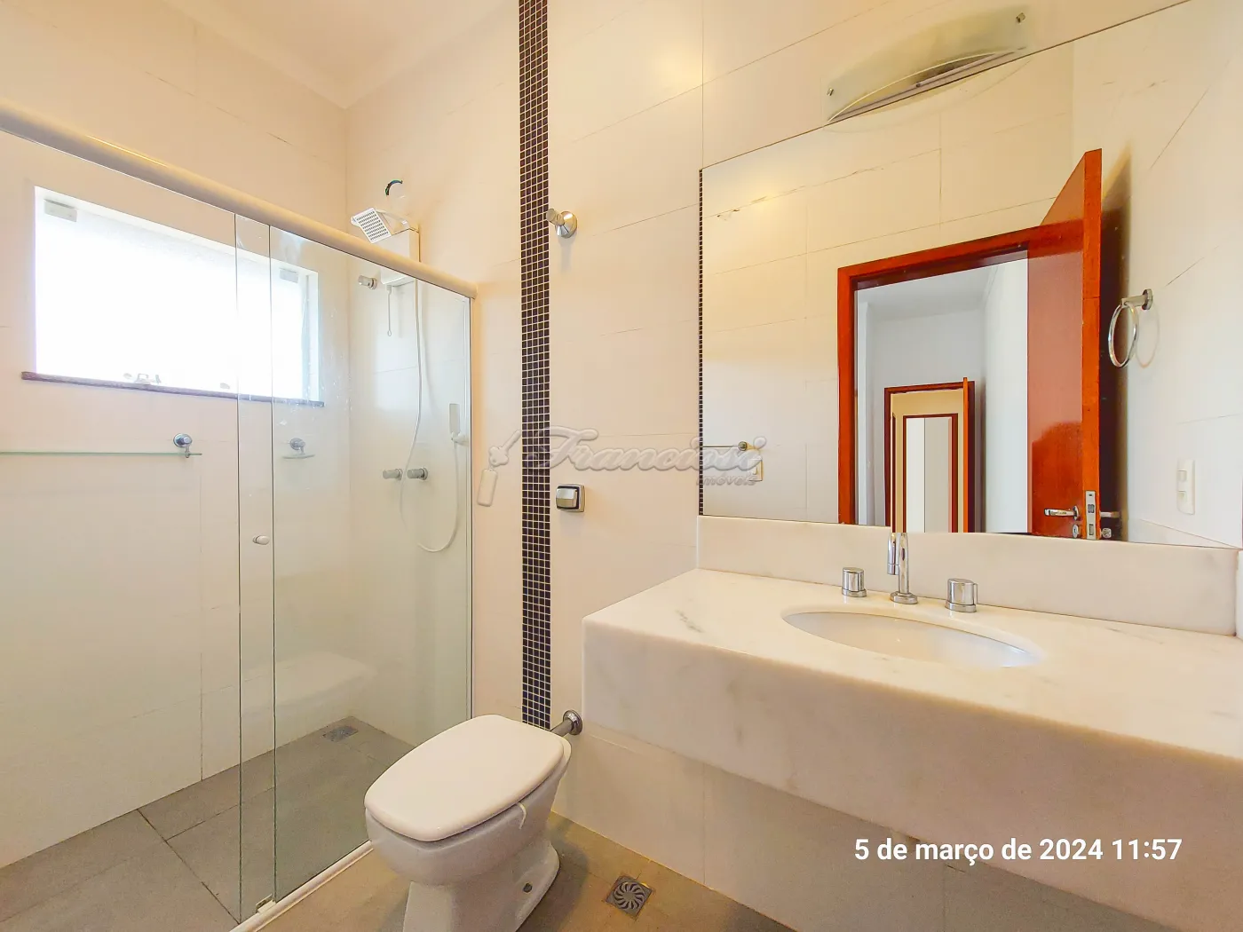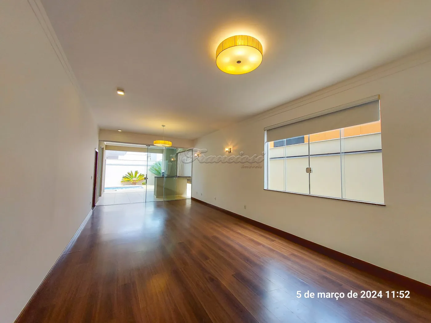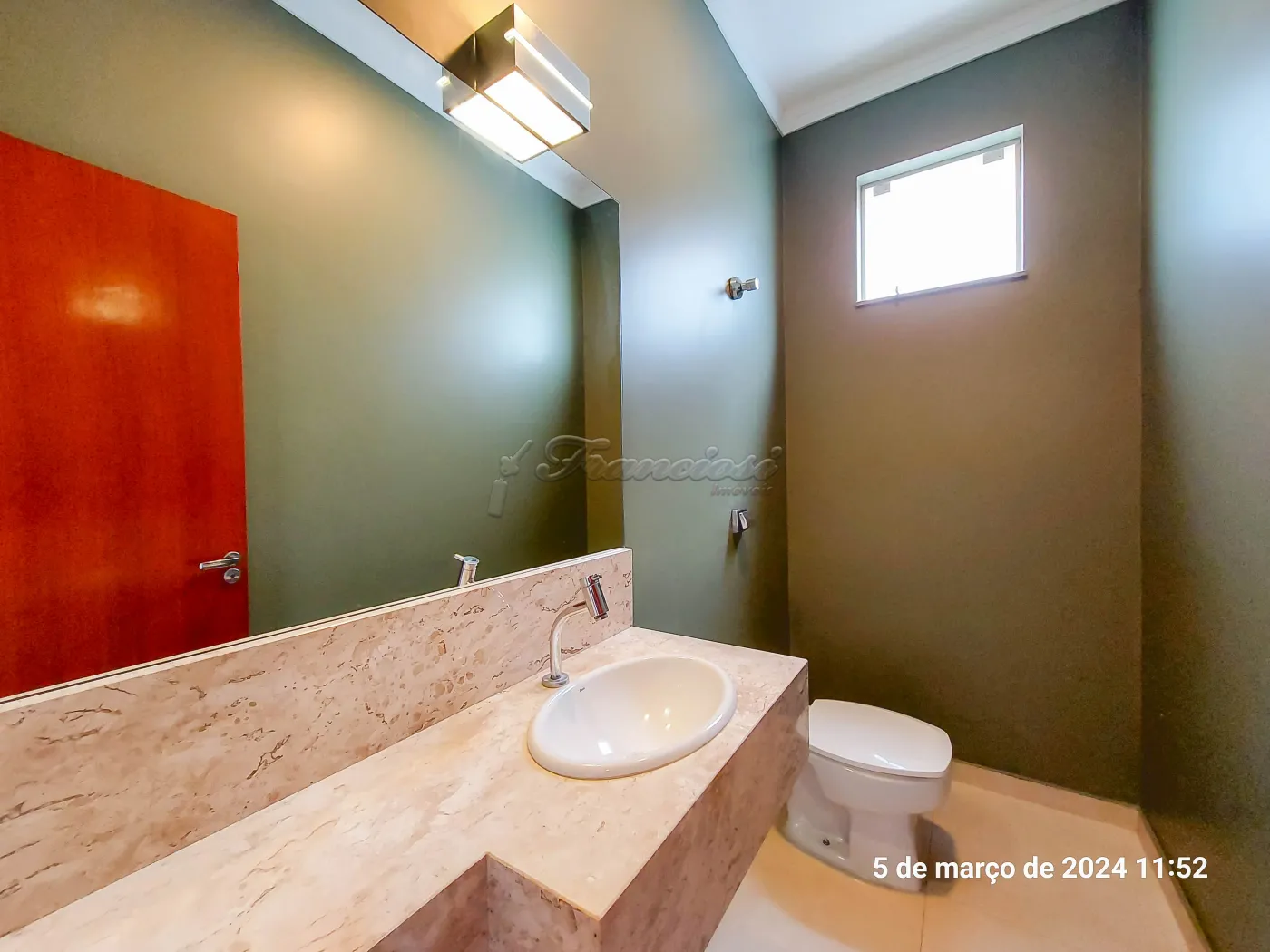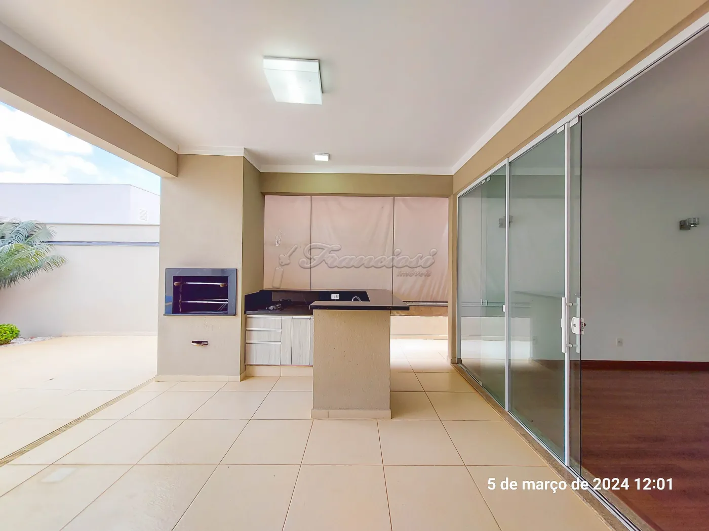Casa em condomínio com 3 suítes, sala 2 ambientes, cozinha, 1 lavabo, escritório, lavanderia coberta, área gourmet com churrasqueira e armário, 1 banheiro externo, piscina e garagem coberta para 2 carros.