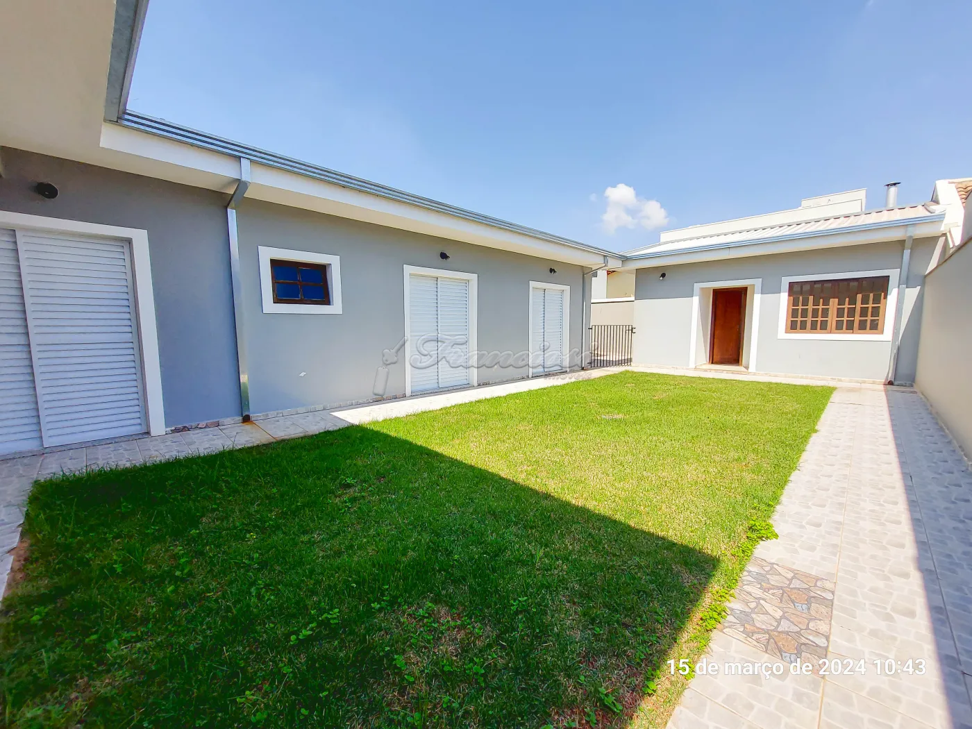 Casa em condomínio com 3 dormitórios sendo 1 suíte, sala de estar ampla, cozinha, 1 banheiro social, 1 lavabo, escritório, área de serviço coberta, edícula com 1 dormitório e 1 banheiro, quintal grande parte piso e parte grama e garagem coberta para 2 carros.