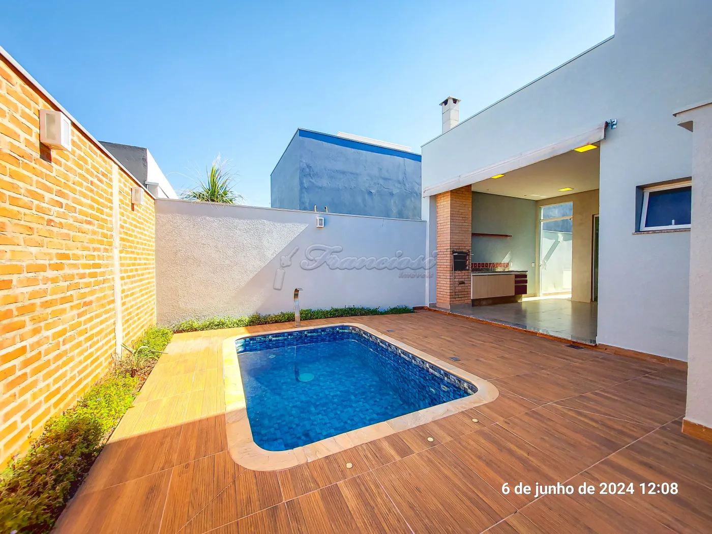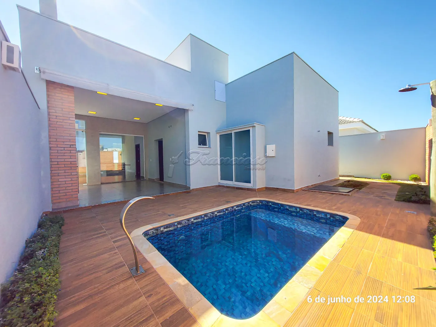 Casa em condomínio com 3 suítes sendo uma com closet e banheiro duplo, lavabo, 1 banheiro social, sala de estar, cozinha completa, área de gourmet completa, 1 banheiro externo, piscina, garagem para 2 carros.