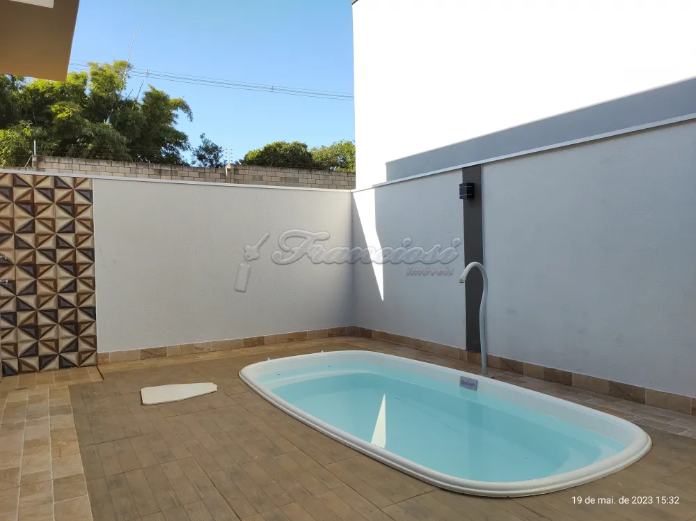 Casa em condomínio com 3 dormitórios sendo 1 suíte, sala de estar e cozinha conjugadas, área de luz, 1 banheiro social com box blindex, área gourmet com churrasqueira, lavanderia, piscina (pequena), garagem coberta para 2 carros.