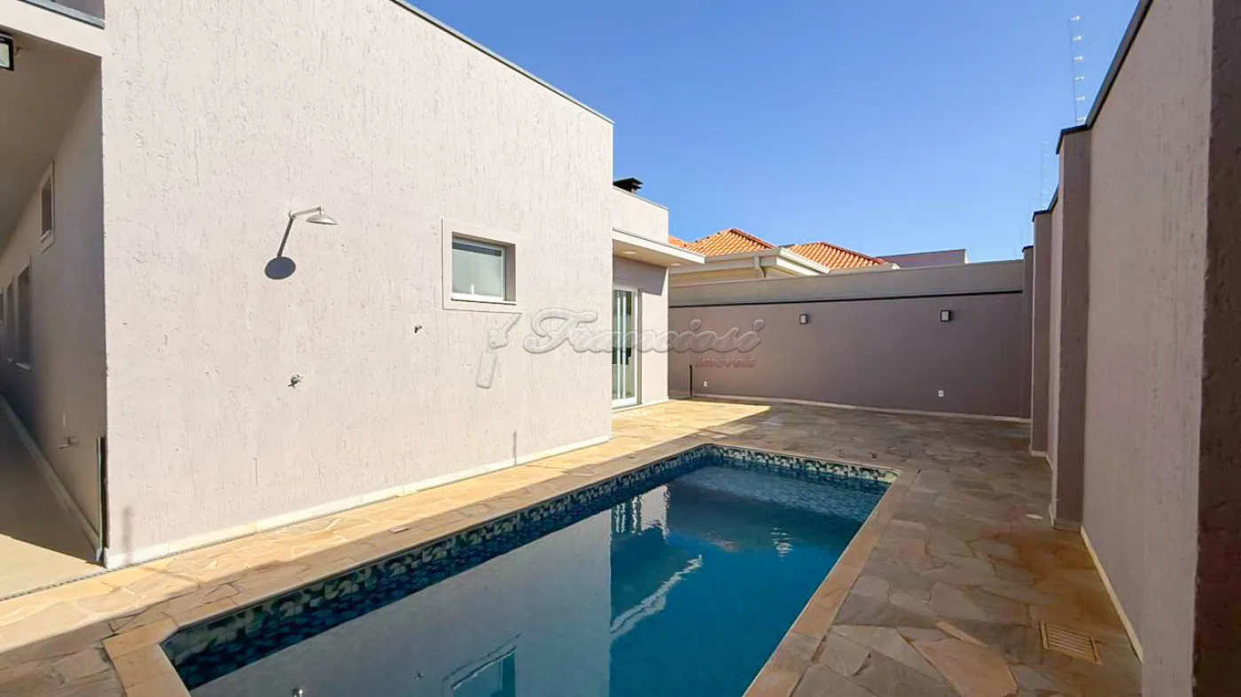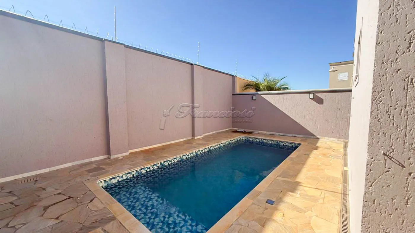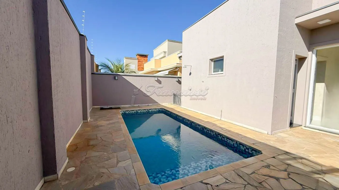 Casa em condomínio com 3 suítes sendo 1 com closet e os outros 2 com armários planejados, sala 2 ambientes, cozinha ampla com armários planejados, cooktop e coifa, escritório, lavabo, área gourmet, lavanderia, 1 banheiro e 1 cômodo externo, piscina e garagem coberta para 2 carros.