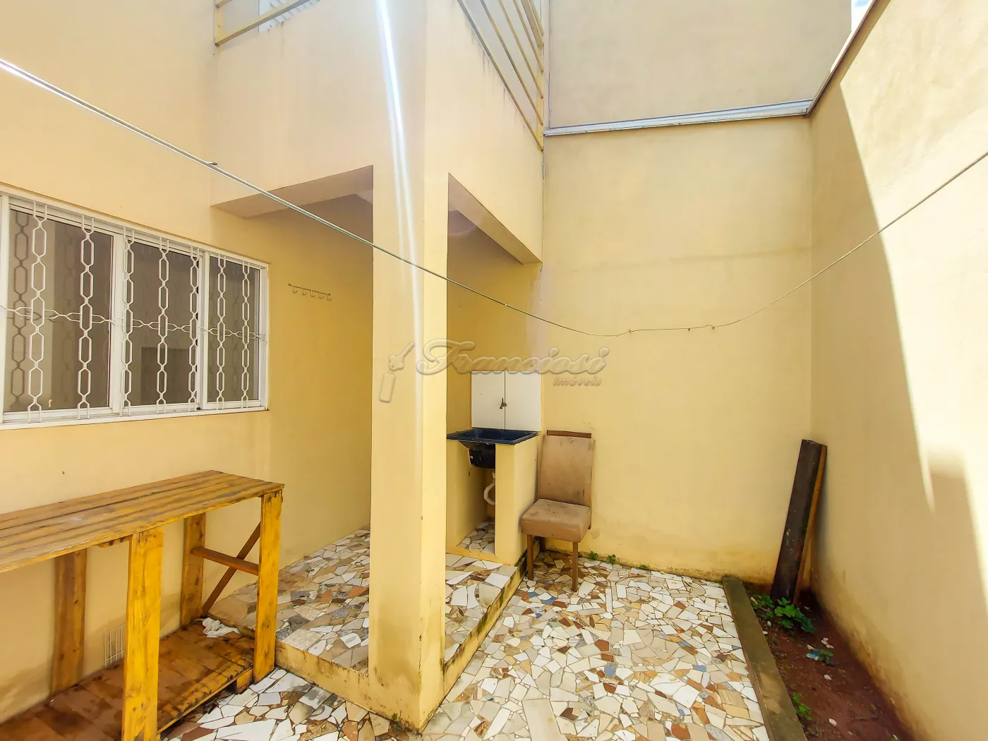 Casa com 2 dormitórios, sala, cozinha com armário, 1 banheiro social, área de serviço coberta, quintal, churrasqueira, 1 cômodo nos fundos e garagem coberta para 1 carro. Acabamento: forro de madeira e piso frio.