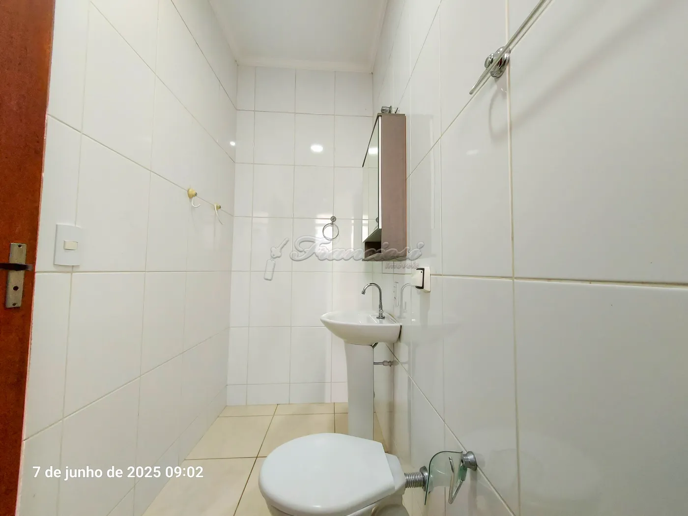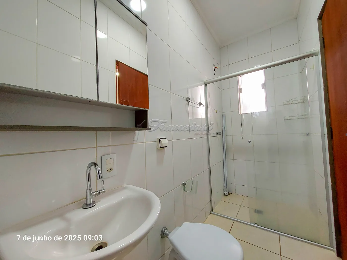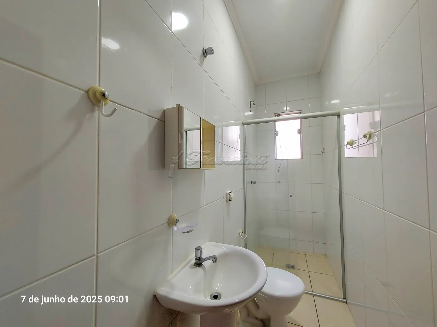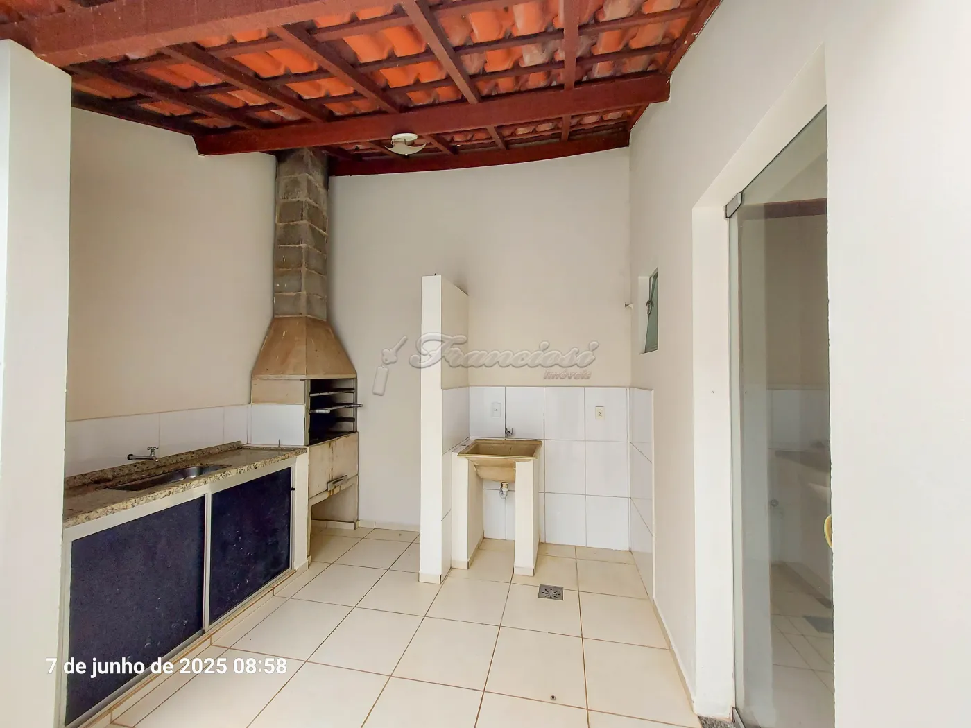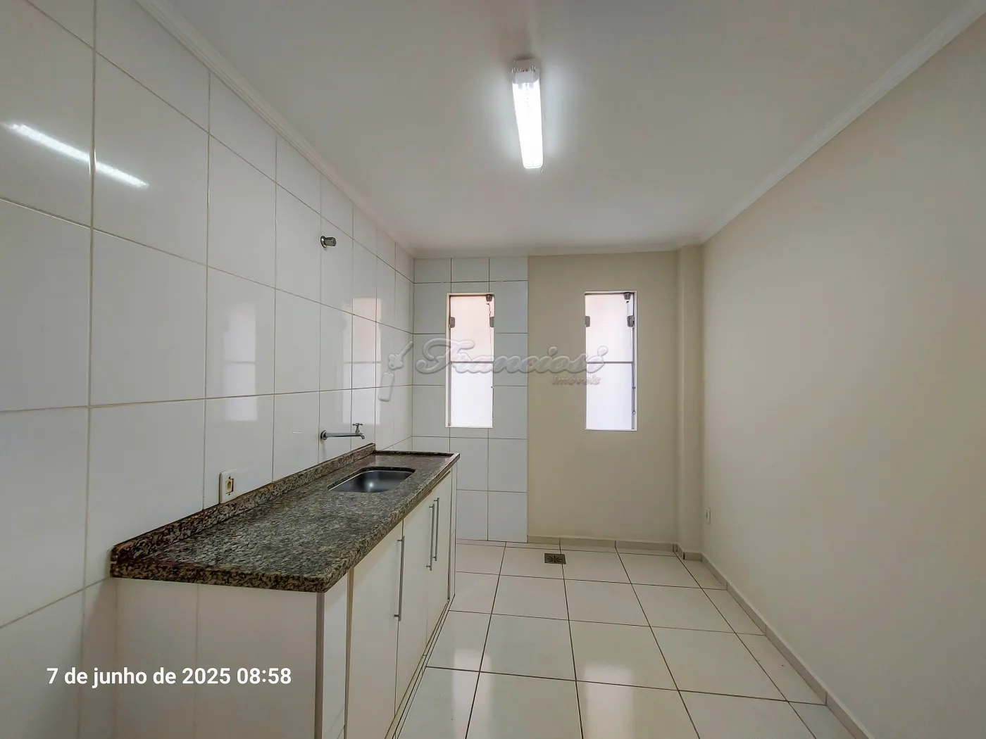 Acabamento: laje, piso frio, cozinha e banheiro azulejados até o teto.