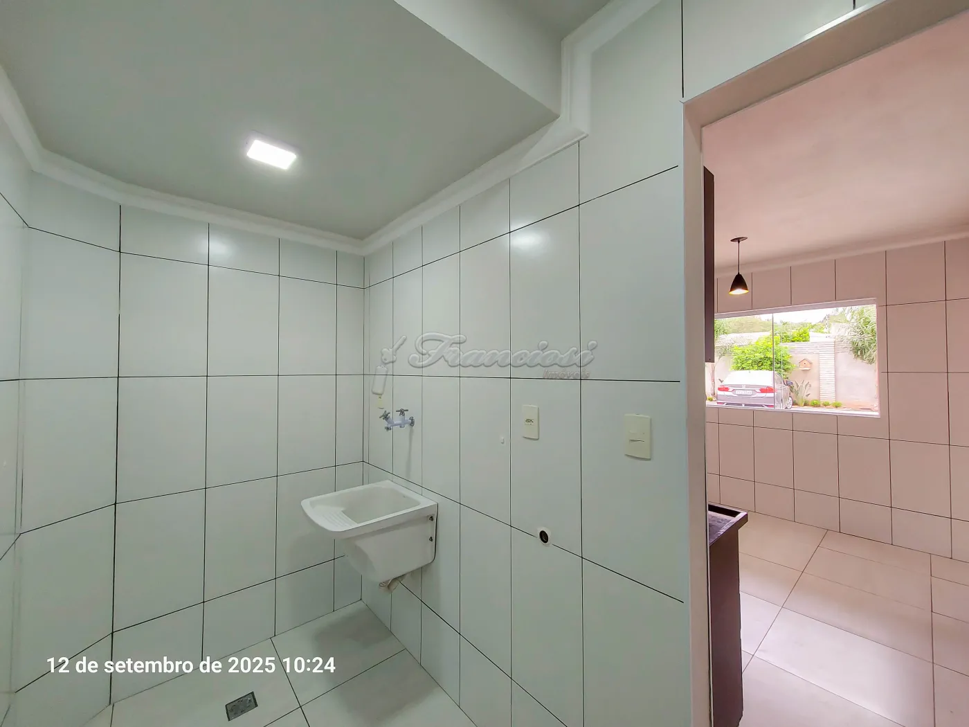 Casa com 2 dormitórios sendo 1 suíte com box blindex, sala de estar, cozinha, 1 banheiro social com box blindex e área de serviço coberta. Sem garagem. Acabamento: laje e piso frio.