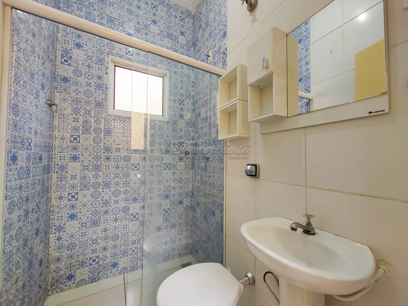 Acabamento: Laje com moldura em gesso, piso frio e azulejo até o teto.