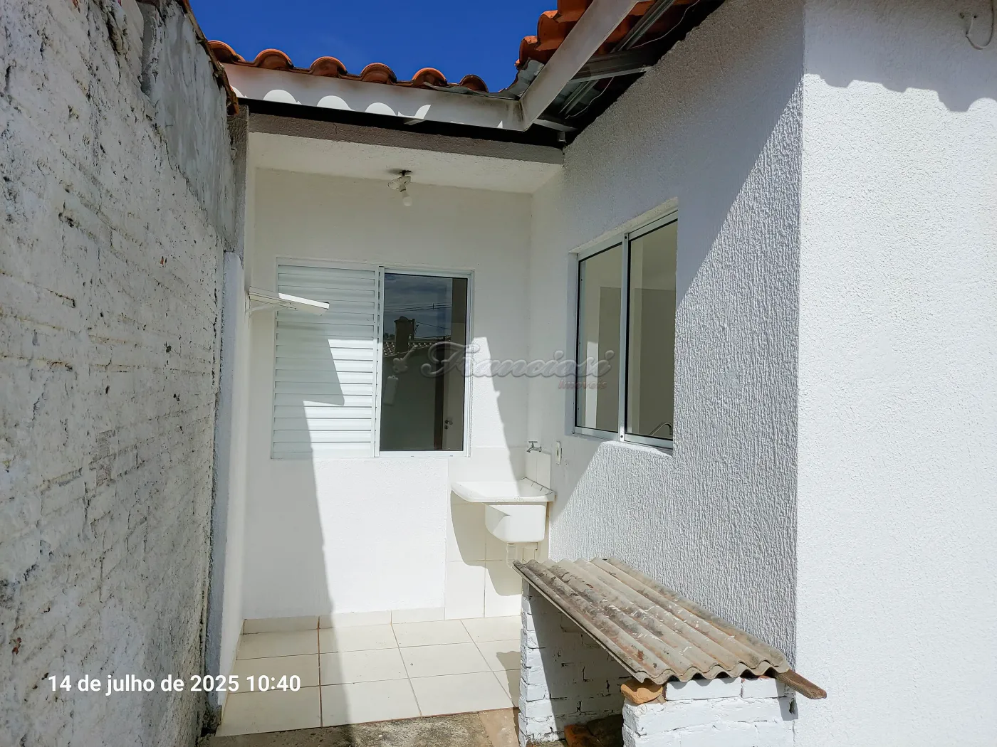 Casa com 2 dormitórios com armários, sala e cozinha conjugada, 1 banheiro social com box blindex, espelho e chuveiro, área de serviço coberta, quintal cimentado e entrada descoberta para 1 carro.
