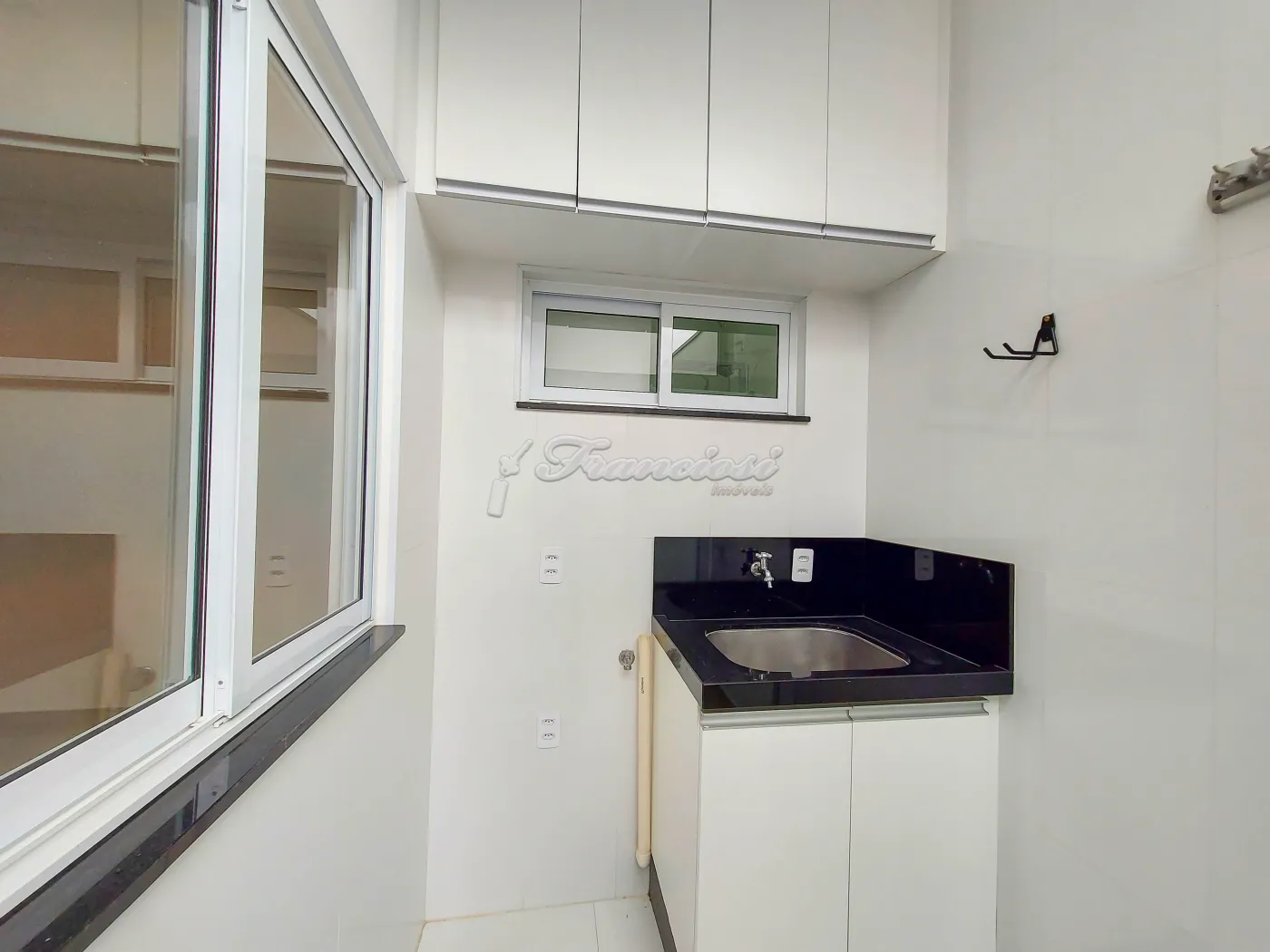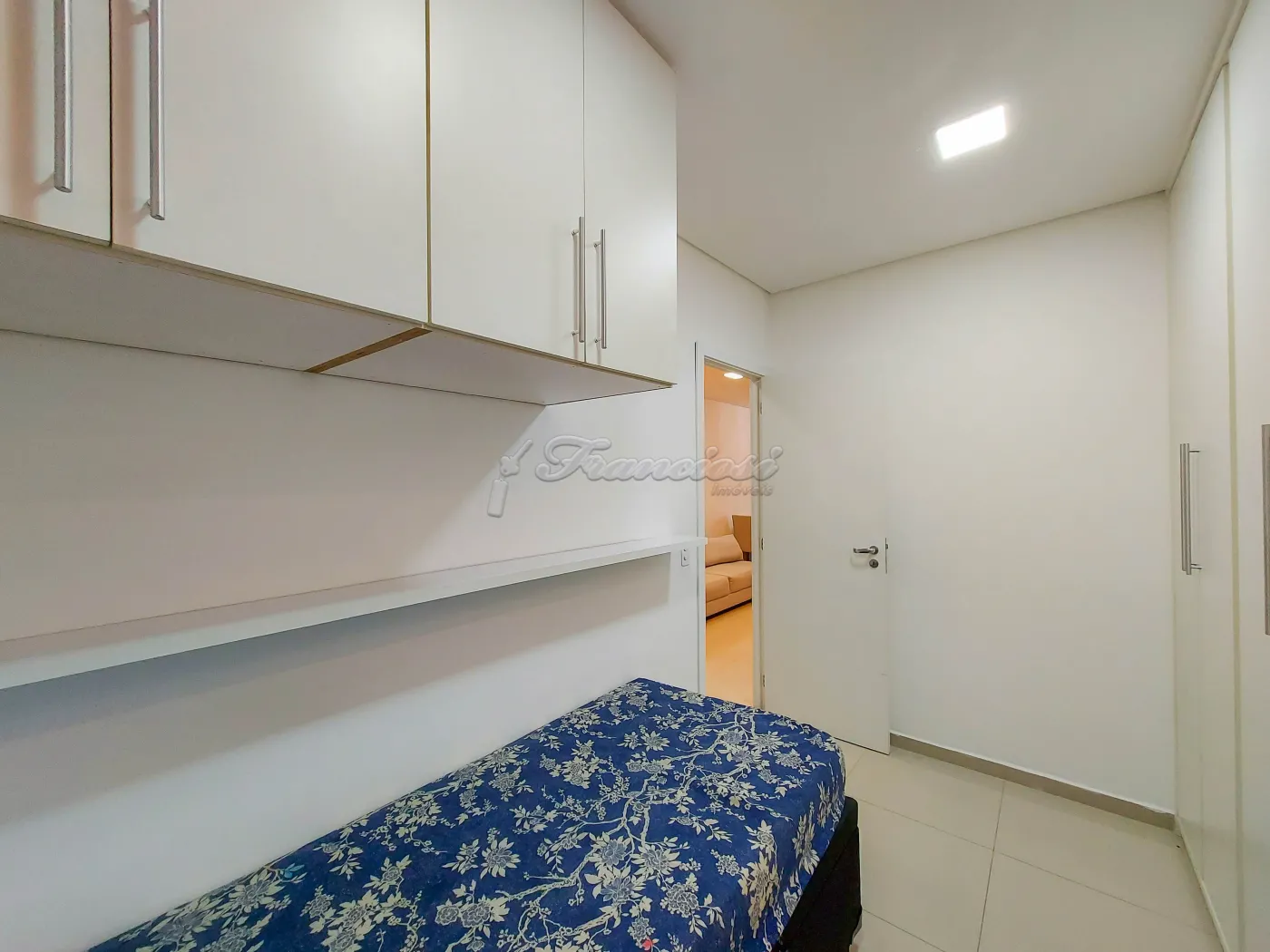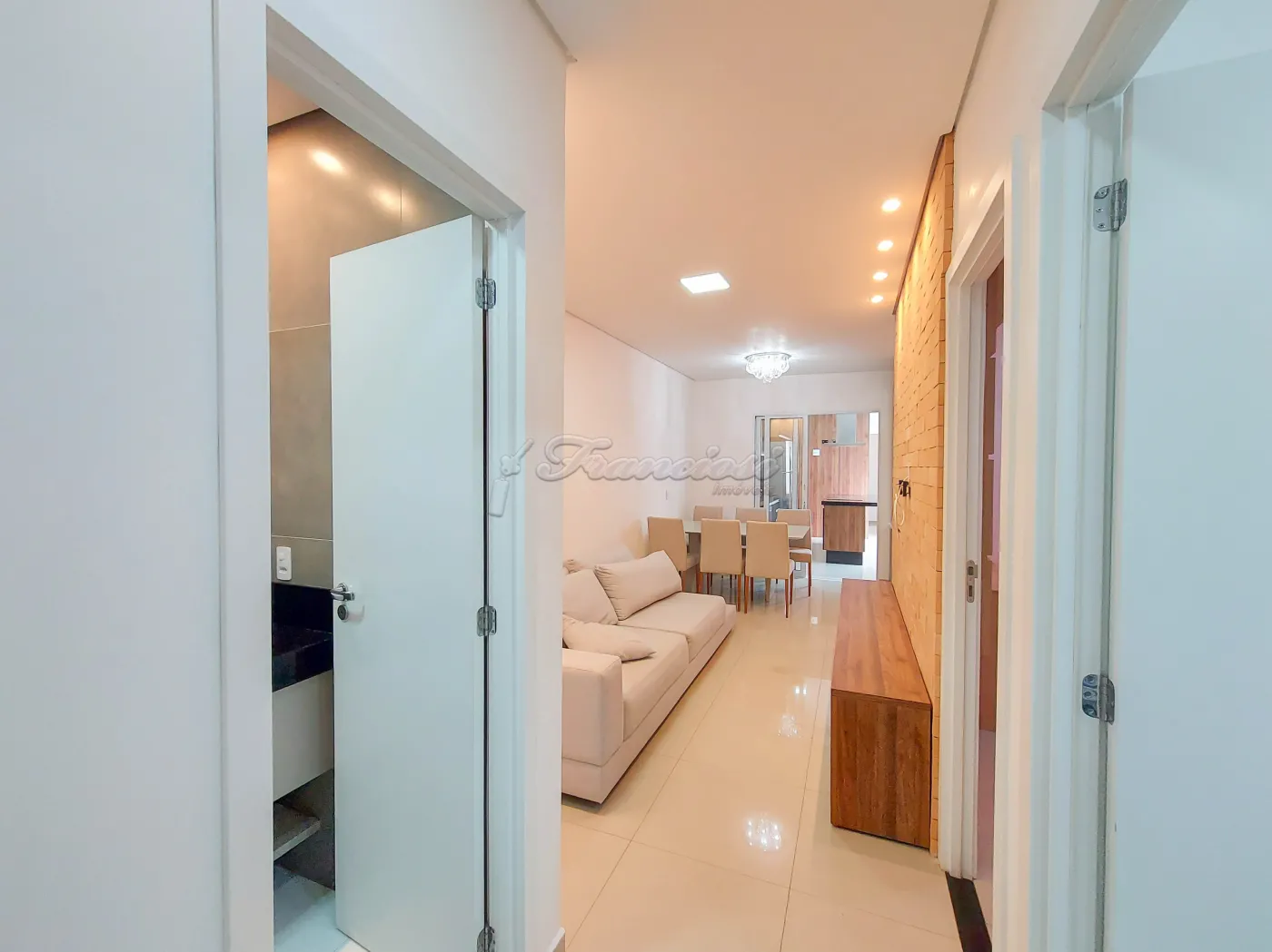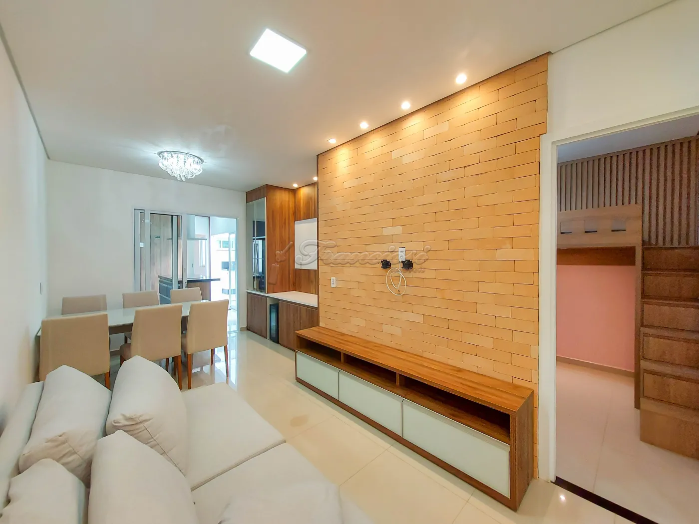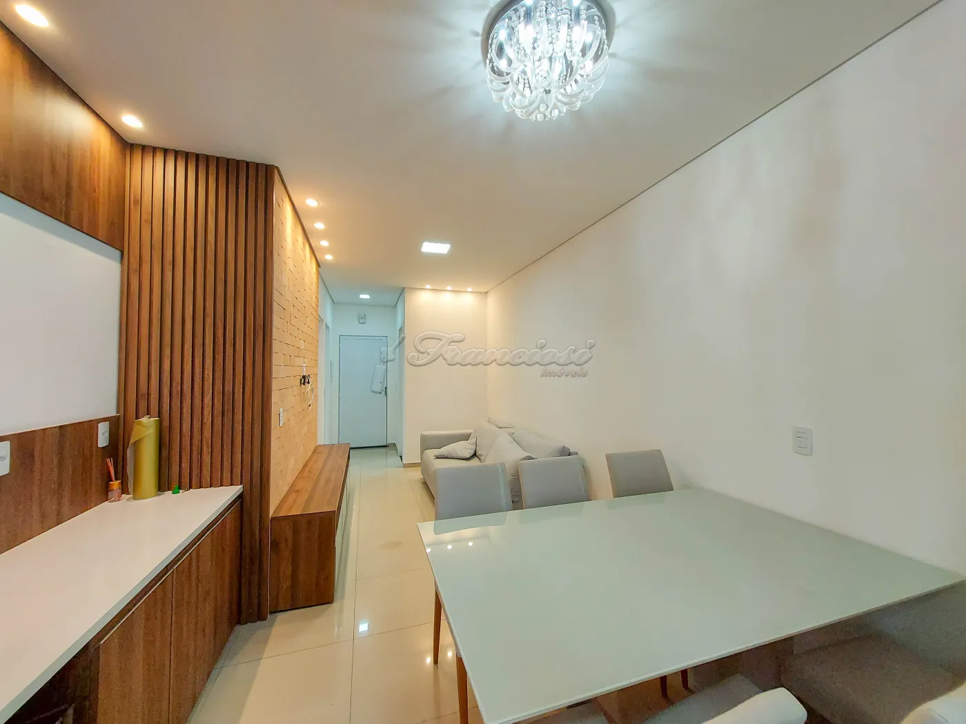 Mobiliado com cama, sofá, mesa com 6 cadeiras, maquina de lavar roupa, geladeira, cooktop e forno.