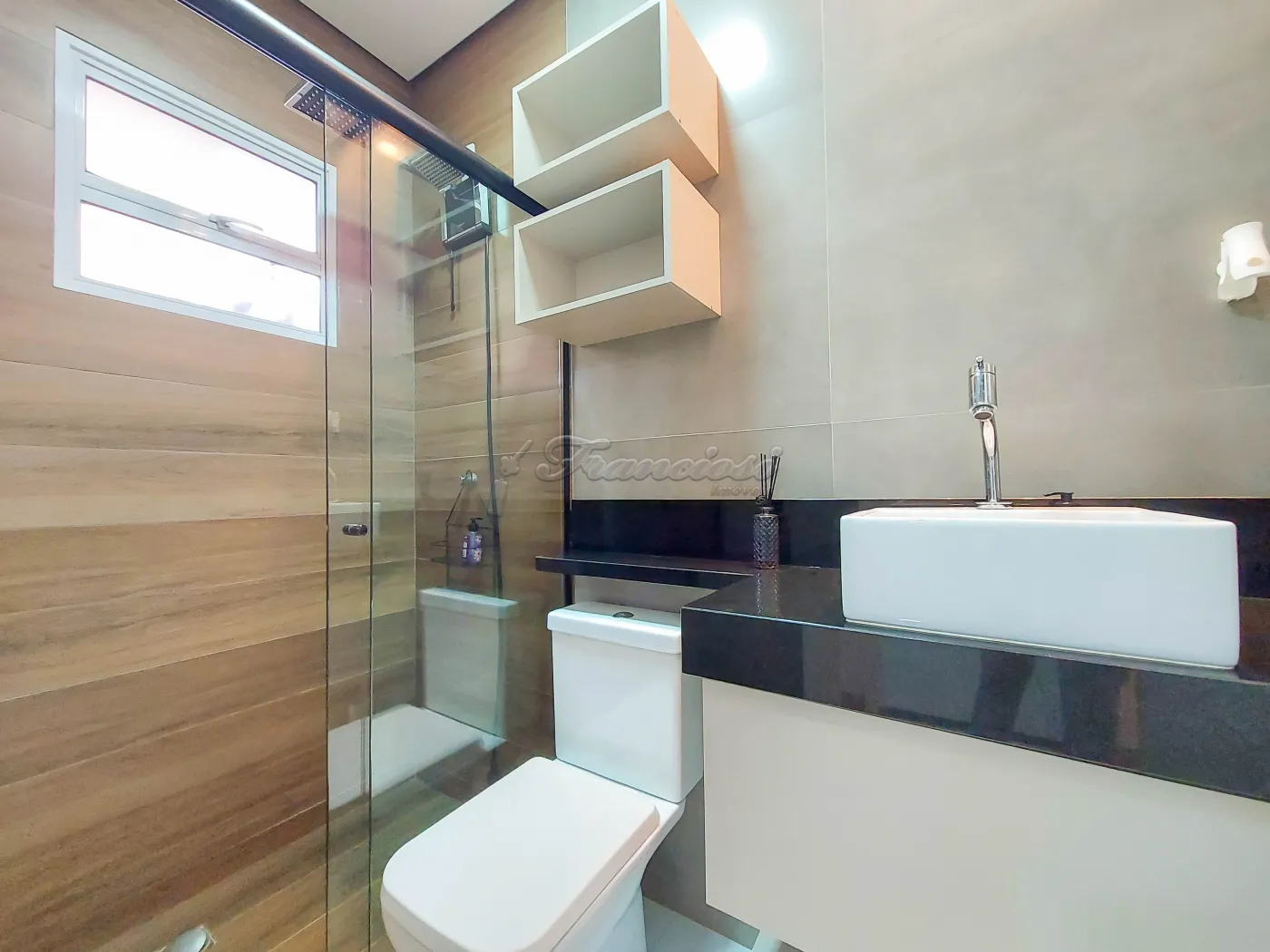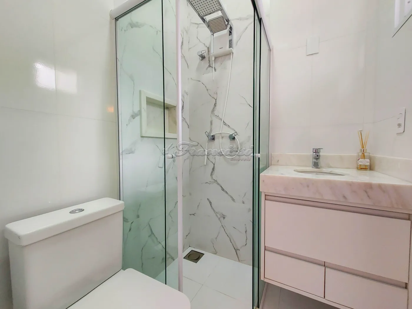 Casa com 2 dormitórios, sala de estar com rack, cozinha com ilha integrada com a área de lazer com churrasqueira, 1 banheiro social com box blindex, lavanderia, 1 cômodo nos fundos com 1 banheiro com box blindex, quintal pequeno e garagem coberta para 1 carro. Com armários planejados nos banheiros, dormitórios, cozinha, área de lazer e lavanderia.