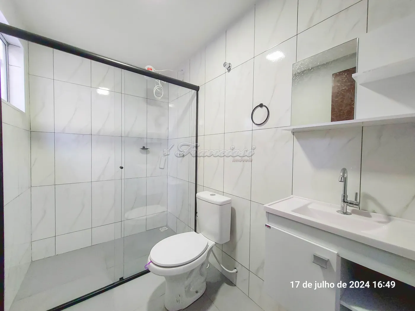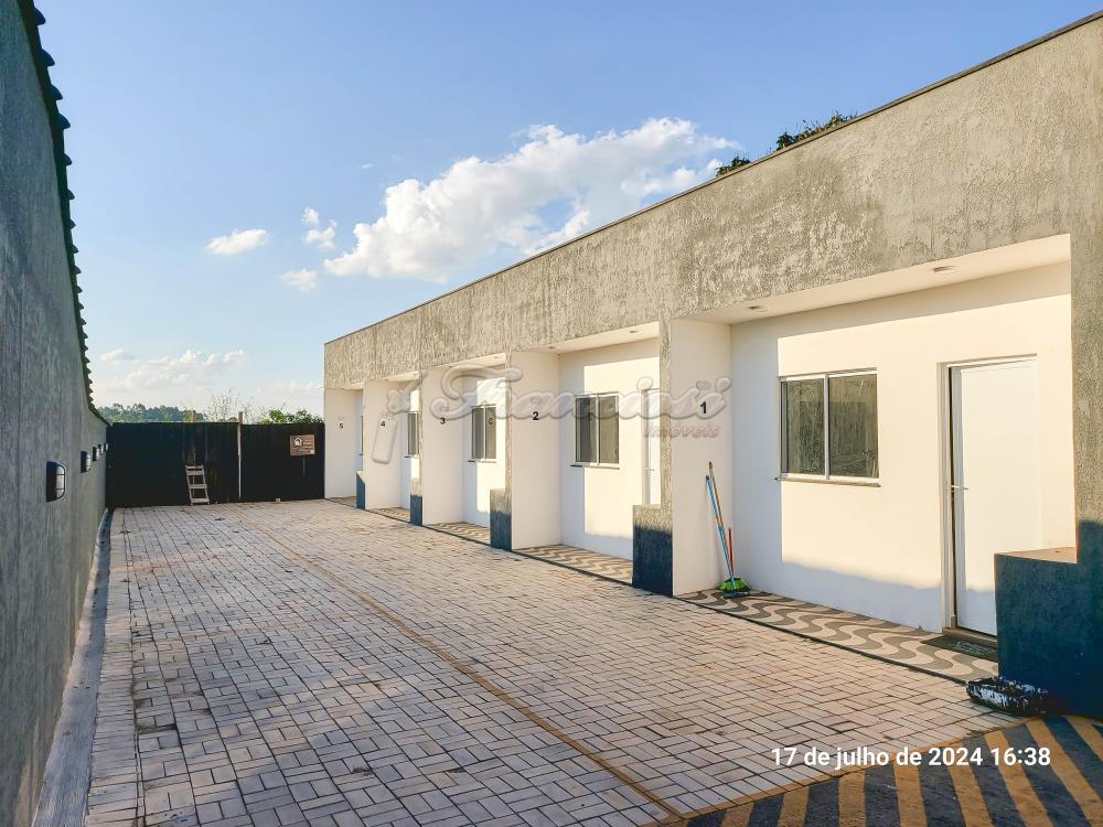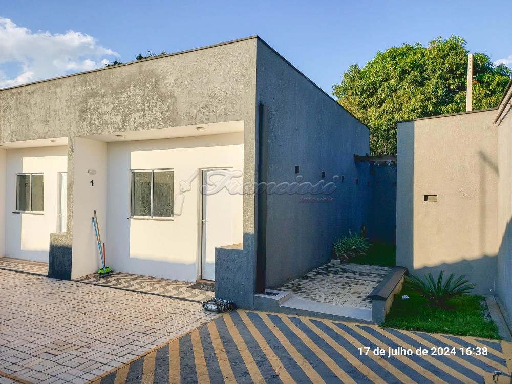 Casa com 2 dormitórios, sala de estar, cozinha, 1 banheiro social com box acrílico, área de serviço coberta, quintal cimentado e entrada descoberta para 1 carro. Acabamento: laje, piso frio, cozinha e banheiro azulejado até o teto.