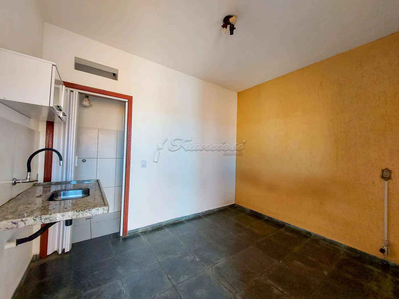 Kitnet com 1 dormitório integrada com cozinha, 1 banheiro social e área de serviço. Sem garagem.