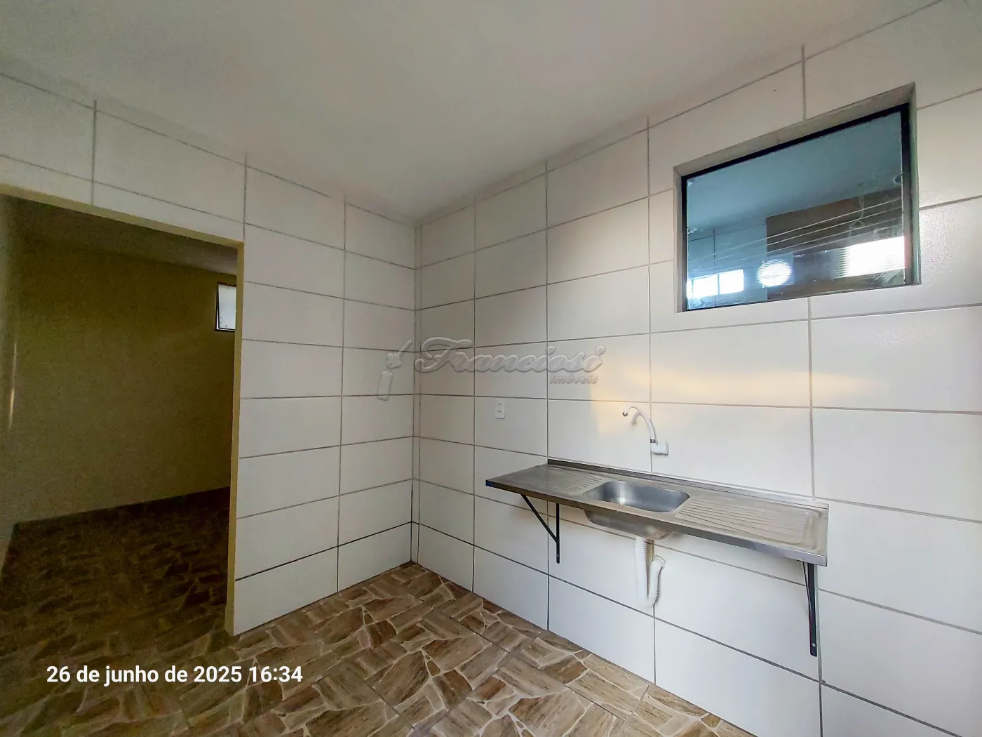 Kitnet com 1 dormitório, cozinha, 1 banheiro, área de serviço e vaga para moto.