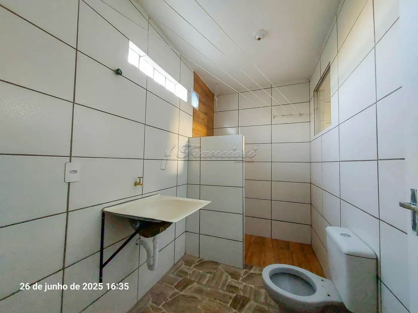 Casa com 2 dormitórios, sala, cozinha, 1 banheiro social com box acrílico, varanda, área de serviço coberta, quintal e entrada para vários carros. Acabamento: forro de madeira, piso frio e azulejo.