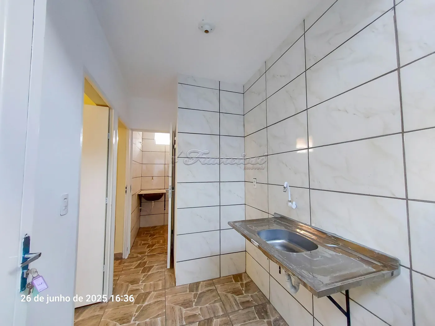 Kitnet com 2 dormitórios, cozinha, 1 banheiro, área de serviço e vaga para moto.