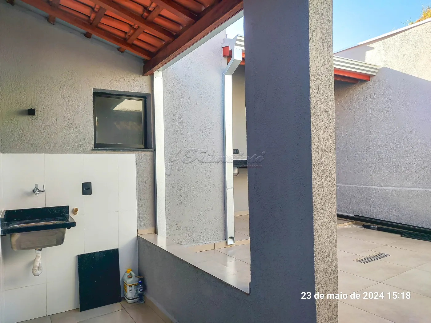 Casa com 2 dormitórios, sala de estar, cozinha com gabinete, 1 banheiro social com box blindex, lavanderia e 1 banheiro externo, quintal com piso e garagem coberta para 1 carro. Acabamento: laje, piso frio, cozinha e banheiro azulejo ate o teto.