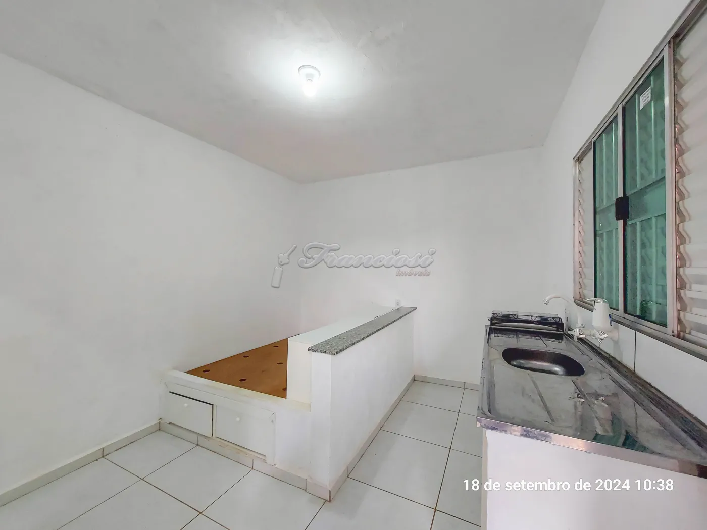 Casa com 1 dormitório, sala de estar, cozinha, 1 banheiro social, 1 cômodo externo, quintal com grama, área de serviço coberta e entrada para 1 carro. Acabamento: forro pvc e piso frio.