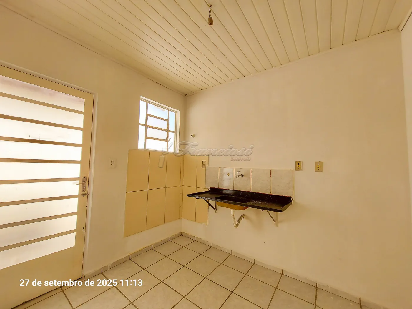 Casa com 2 dormitórios, sala de estar, cozinha, 1 banheiro social, área de serviço, quintal pequeno cimentado e garagem coberta para 1 carro. Acabamento: forro pvc, piso frio, taco, cozinha sem azulejo e banheiro com azulejo pela metade.