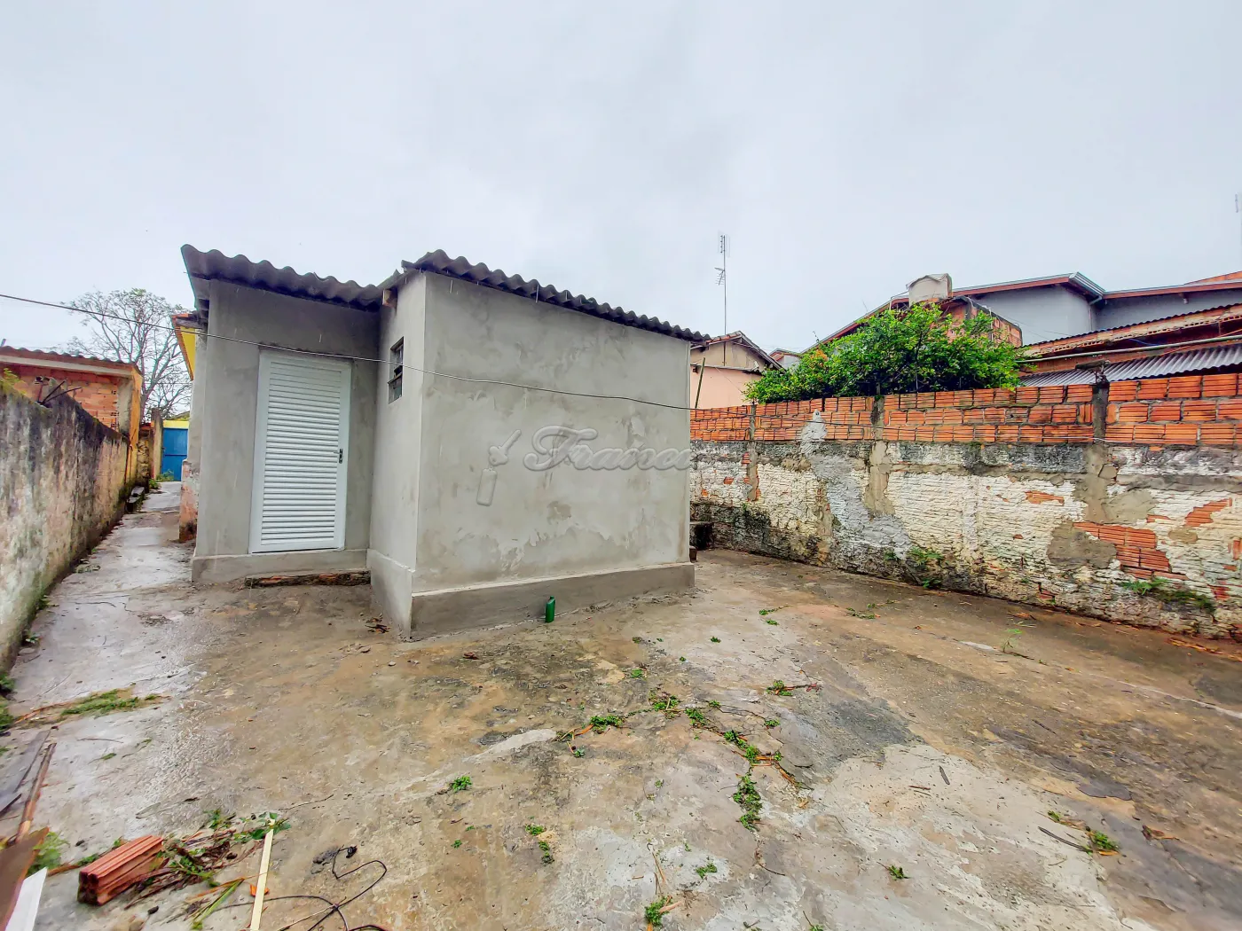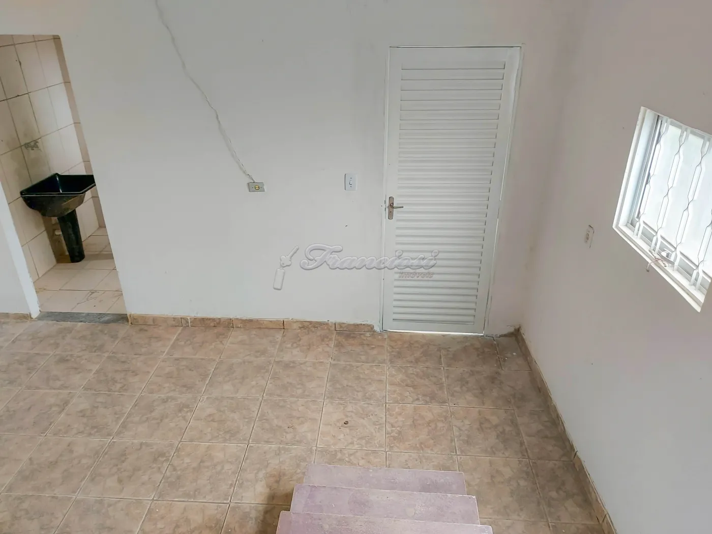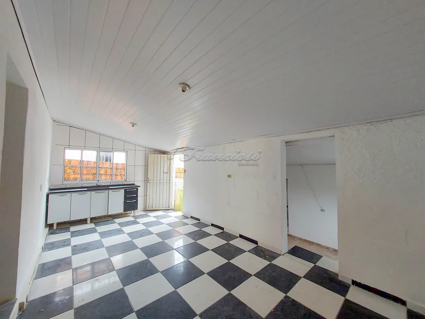 Casa dos fundos com 1 dormitório, sala, cozinha, 1 banheiro social, área de serviço coberta e entrada descoberta para 1 carro. Acabamento: piso frio, forro de madeira no dormitório e laje nos demais cômodos.
