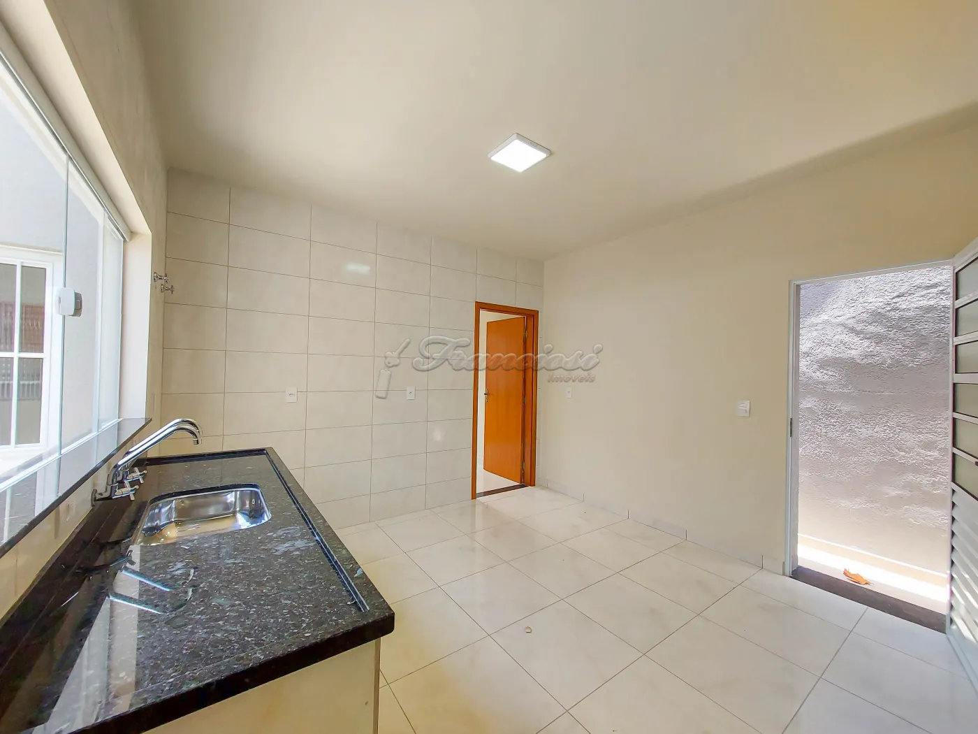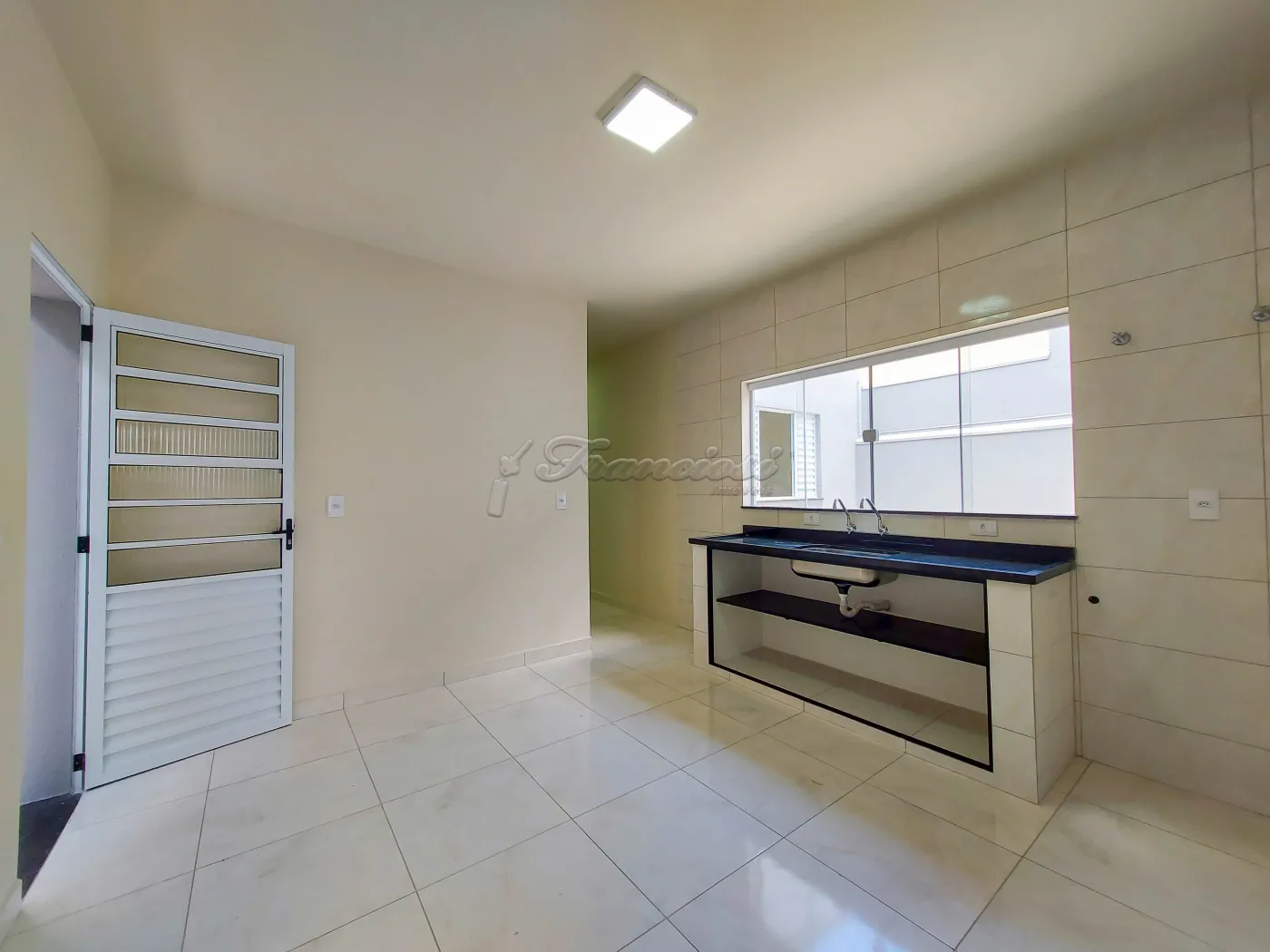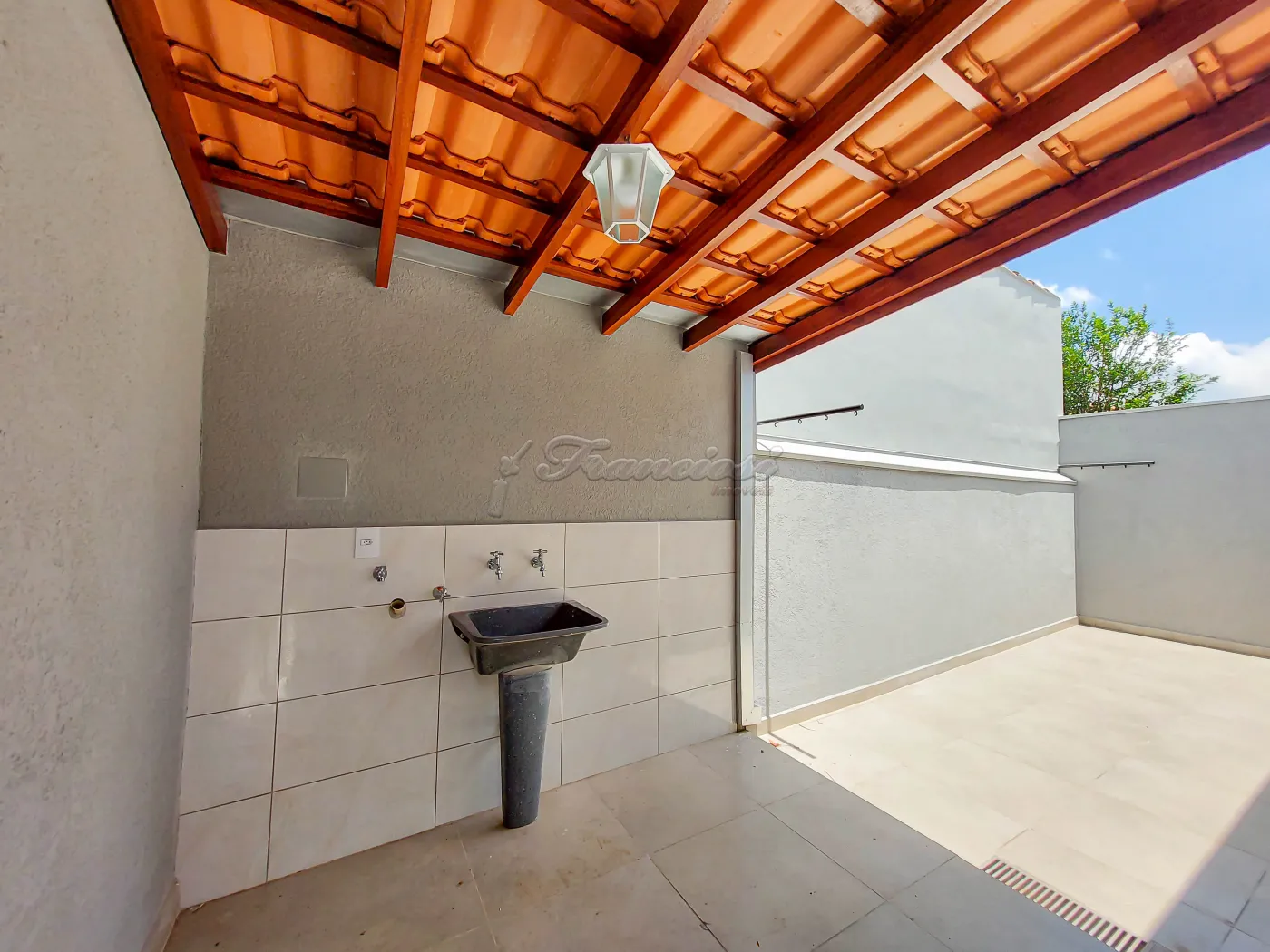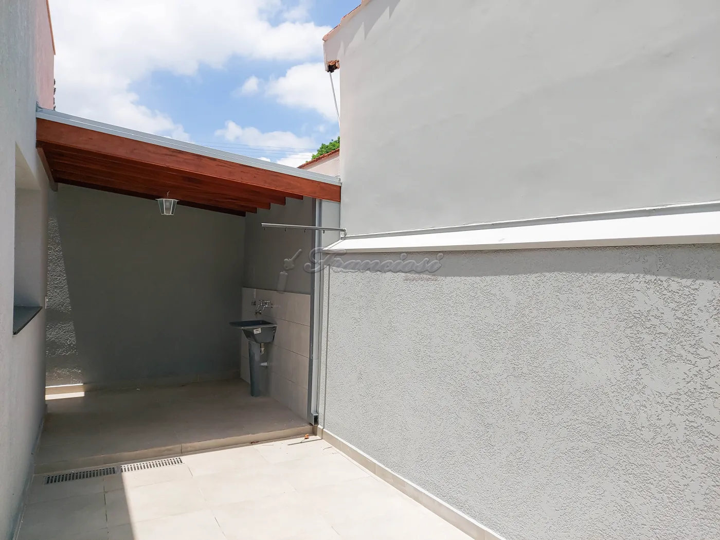 Casa com 3 dormitórios sendo 1 suíte com box acrílico, 1 banheiro social com box acrílico, sala de estar ampla, cozinha, lavabo, área de serviço, quintal grande cimentado, churrasqueira, 1 banheiro externo e garagem coberta para 2 carros. Acabamento: laje, piso frio, cozinha e banheiro com azulejo pela metade.