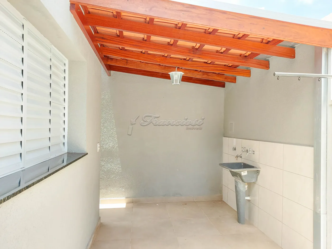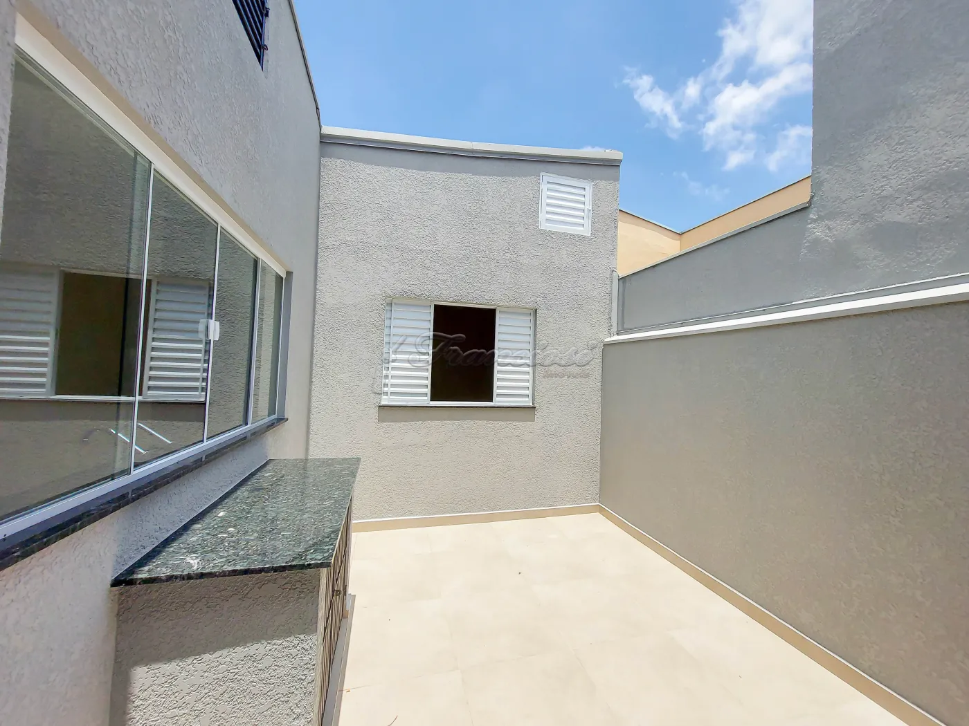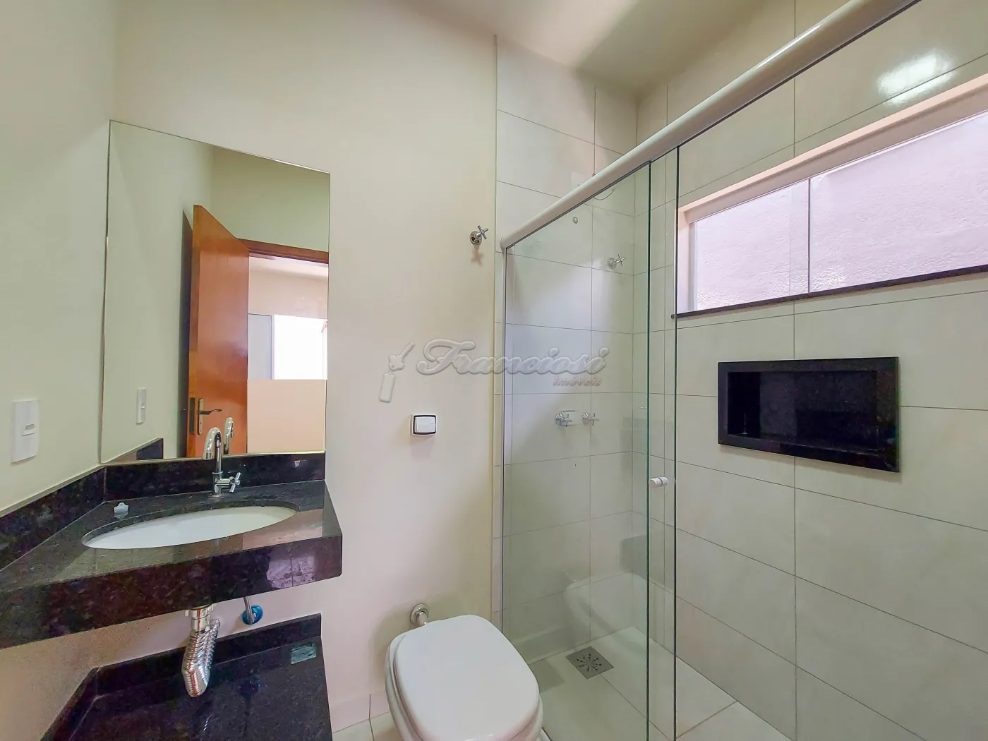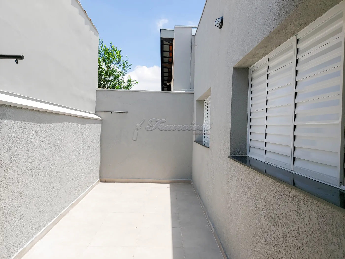 Casa com 3 dormitórios sendo 1 suíte com box acrílico, 1 banheiro social com box acrílico, sala de estar ampla, cozinha, lavabo, área de serviço, quintal grande cimentado, churrasqueira, 1 banheiro externo e garagem coberta para 2 carros. Acabamento: laje, piso frio, cozinha e banheiro com azulejo pela metade.