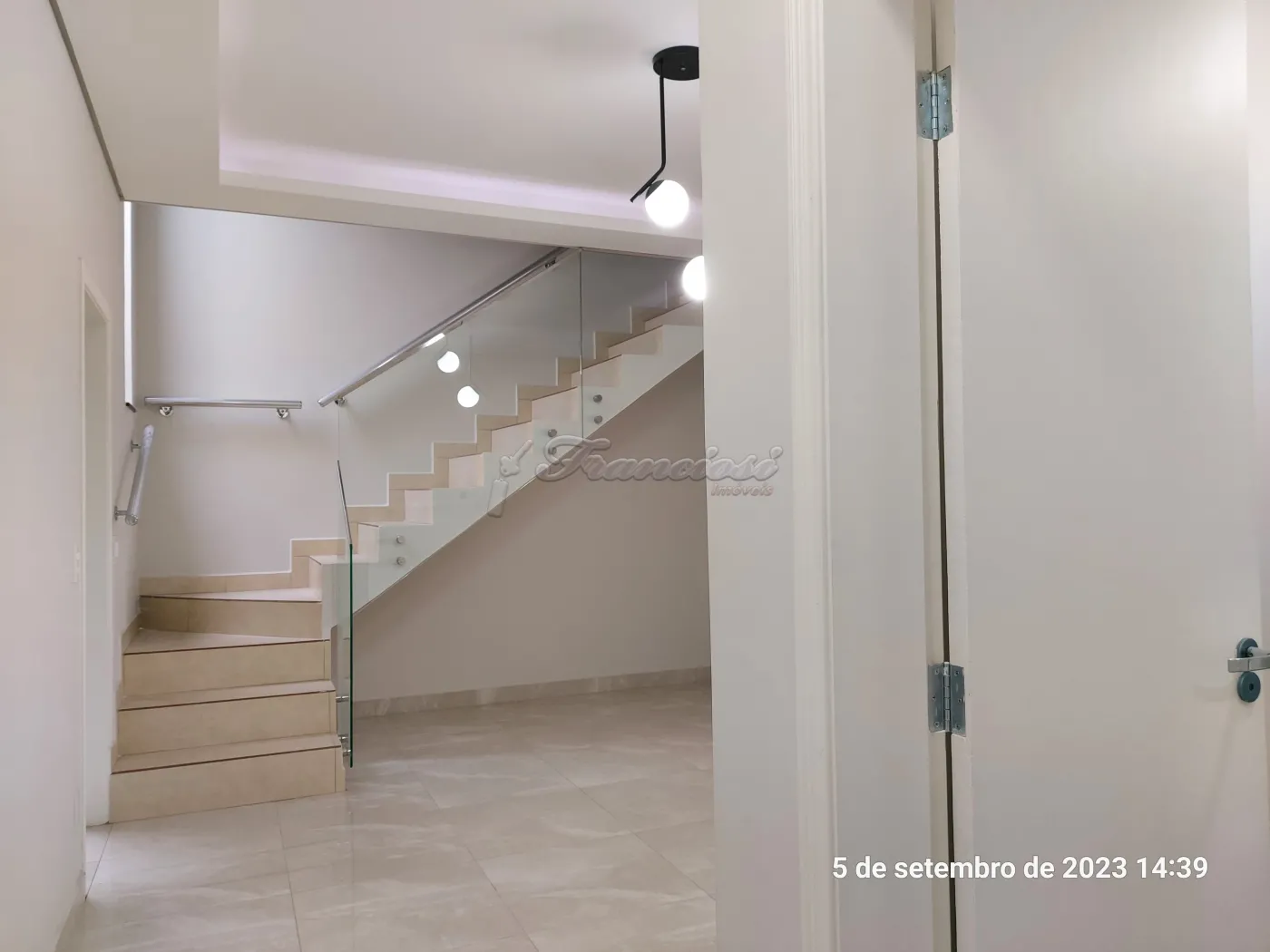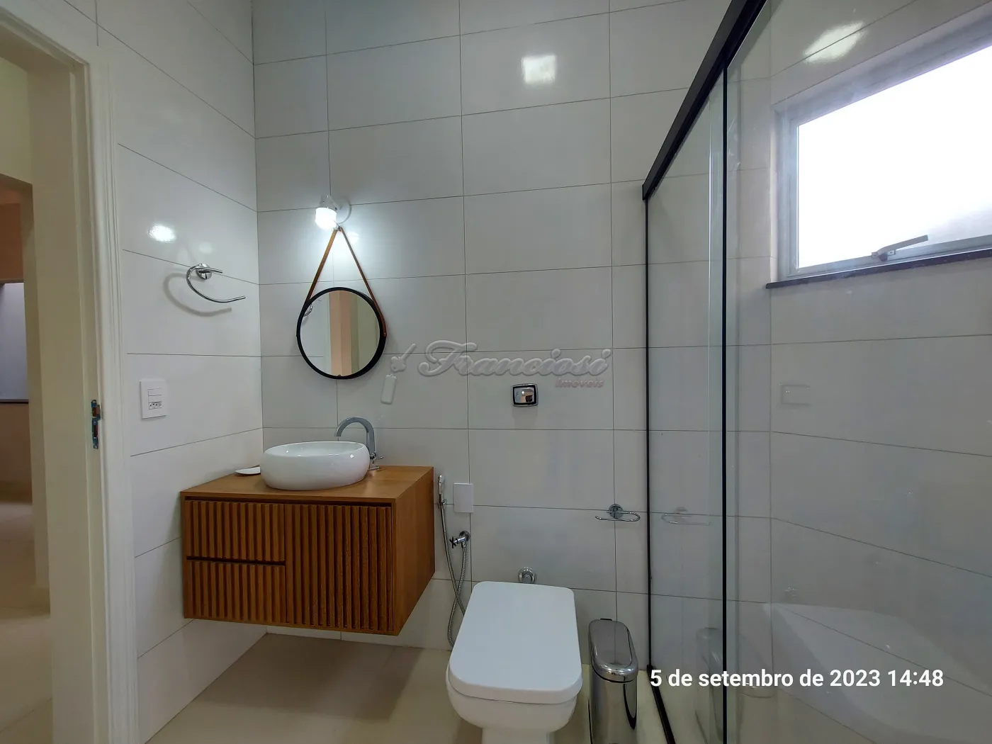 Casa com 4 suítes sendo 2 com box blindex e 1 com box acrílico, sala de estar, cozinha com armários modulados, cooktop e exaustor, sala de jantar, área de lazer com churrasqueira, lavanderia e 1 cômodo externo, quintal e garagem para 2 carros. Com ar condicionado. Acabamento: laje, piso frio e laminado.