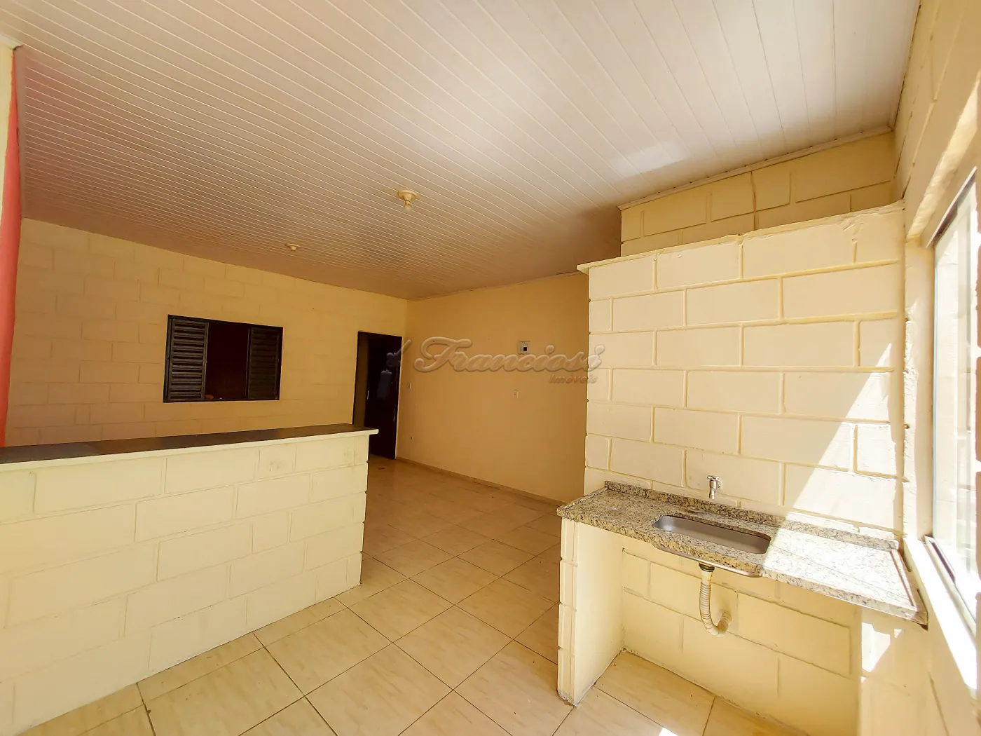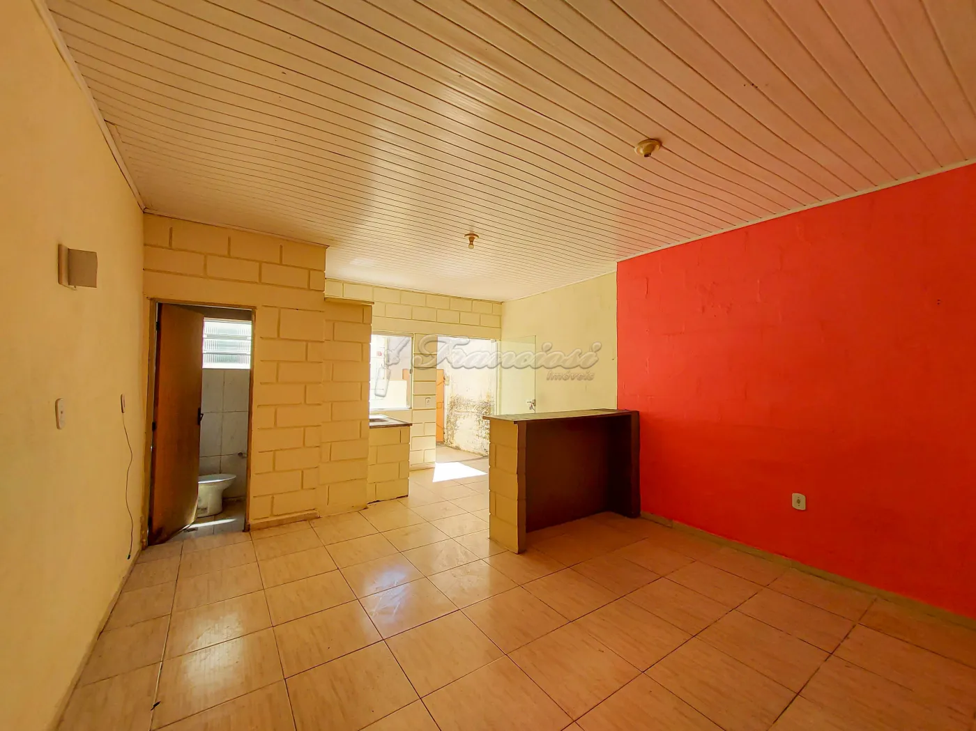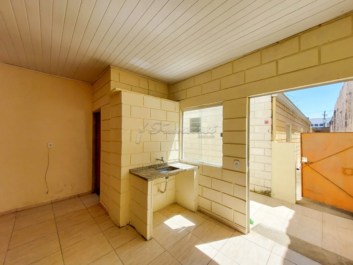 Casa com 1 Dormitório, 1 banheiro, sala, cozinha e área de serviço coberta.