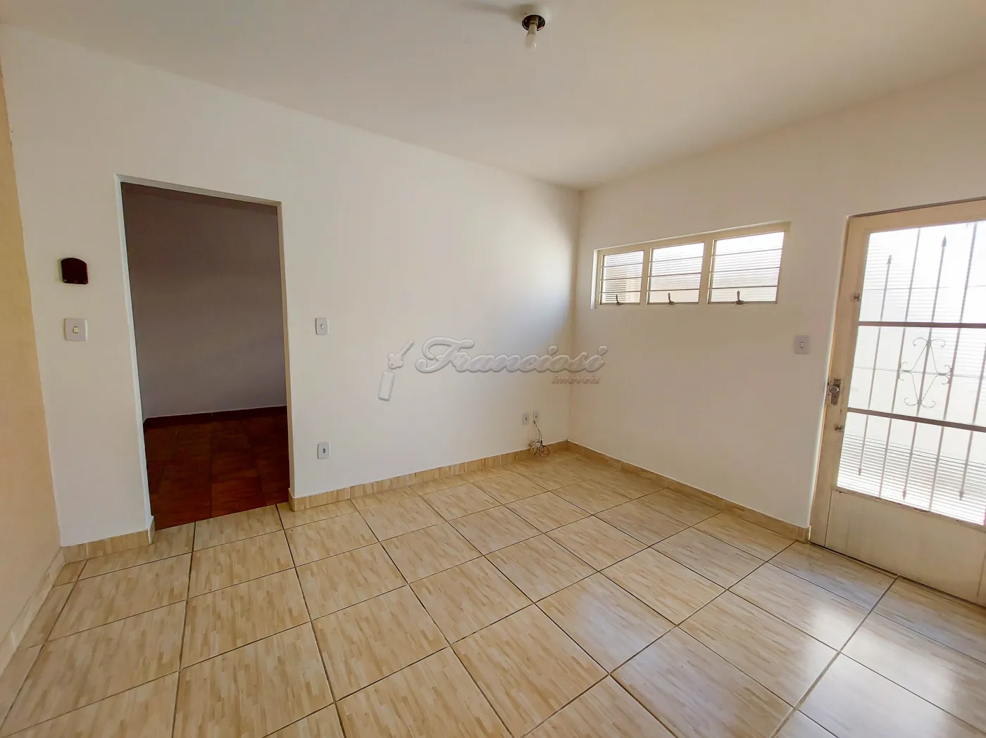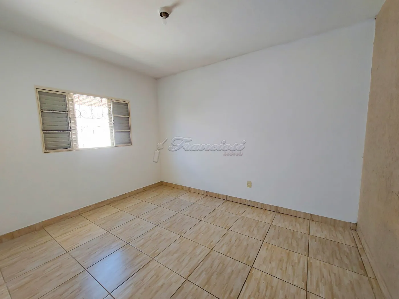 Casa com 3 dormitórios, sala, cozinha, 1 banheiro social, área de serviço coberta, 1 cômodo e 1 banheiro externo, quintal parte com grama, garagem coberta para 1 carro e entrada para mais. Acabamento: forro de madeira, piso frio e azulejo.