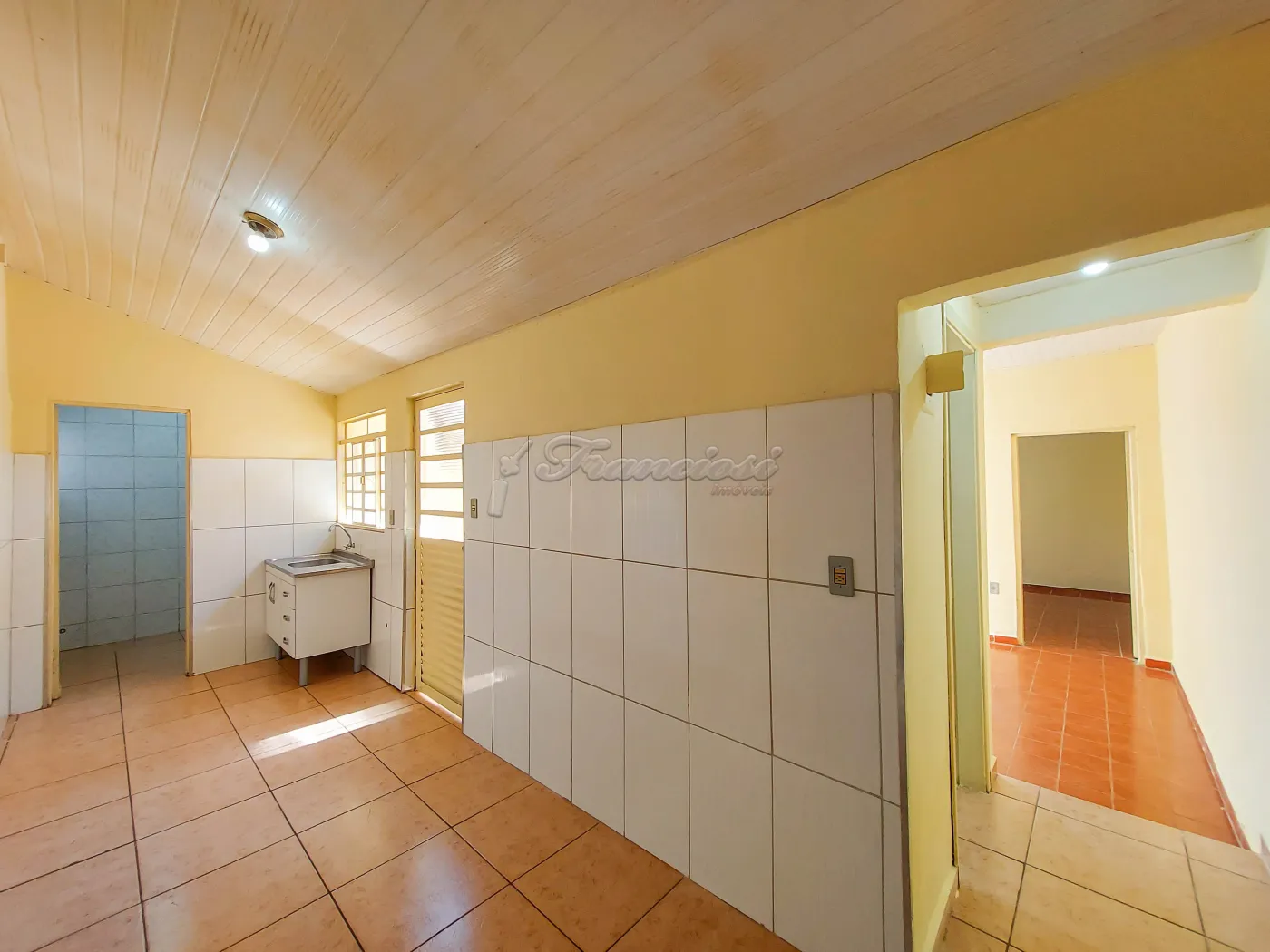 Casa com 1 dormitório, sala e cozinha conjugadas, 1 banheiro social, área de serviço coberta, quintal médio cimentado, garagem coberta para 1 carro. Acabamento: forro de madeira e piso frio.