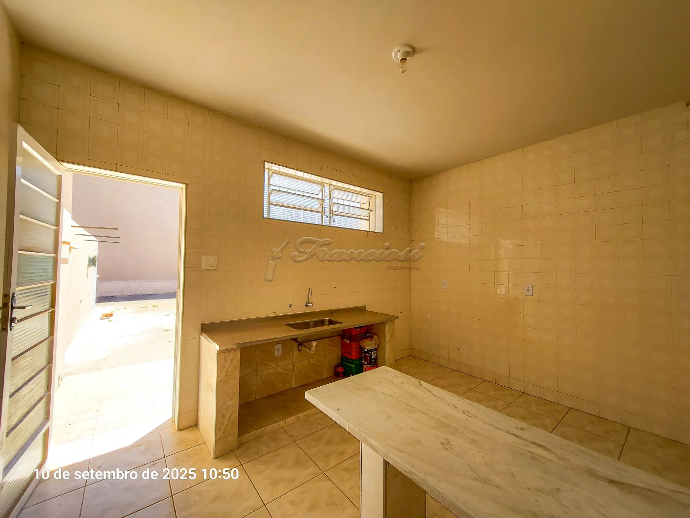 Acabamento: laje, taco de madeira, piso frio, cozinha e banheiro azulejados até o teto.