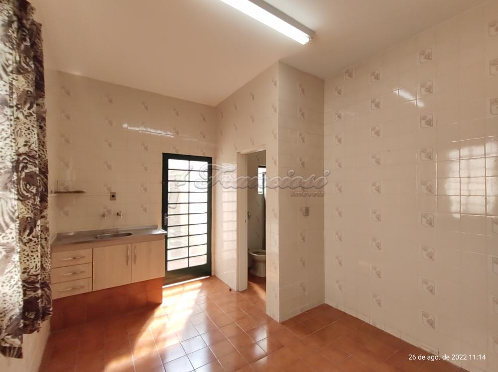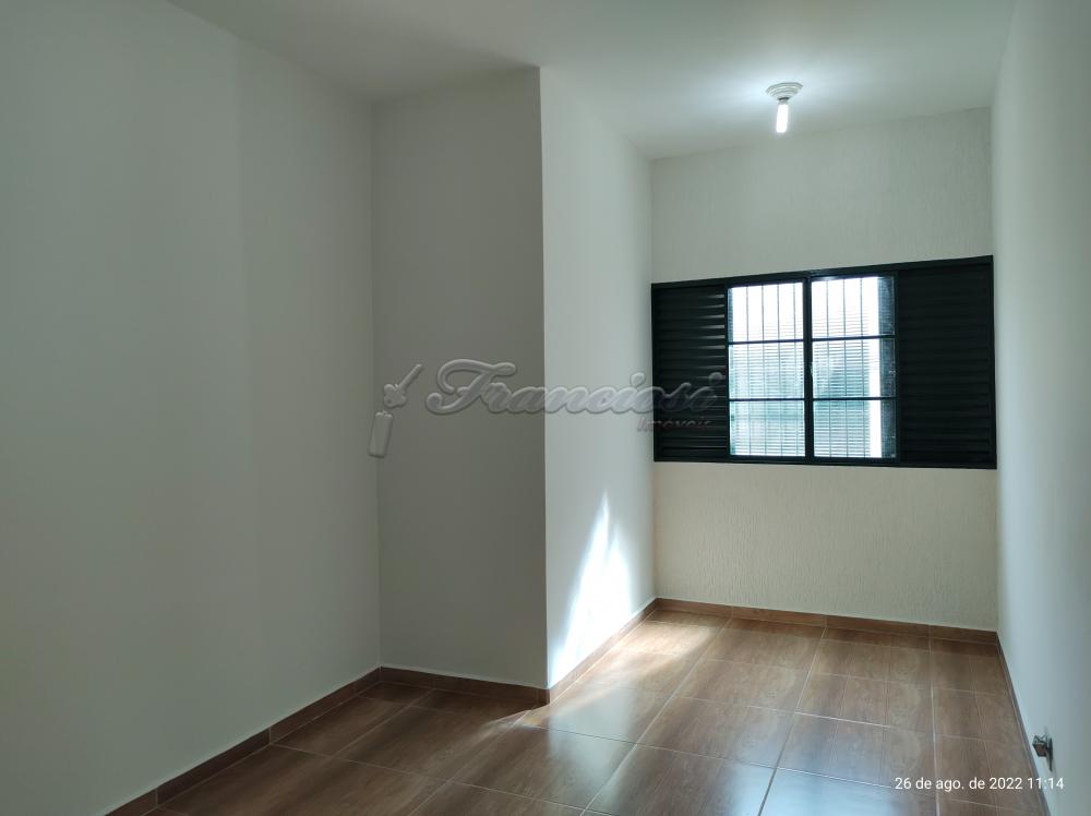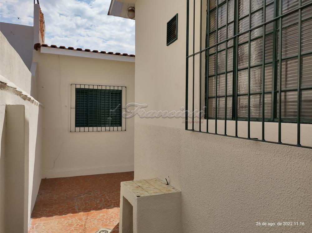 Casa com 3 dormitórios, sala de estar, cozinha com armários modulados, 1 banheiro social, 1 cômodo e 1 banheiro externo, área de serviço, quintal e garagem coberta para 1 carro. Acabamento: laje, forro de madeira, taco e piso frio.