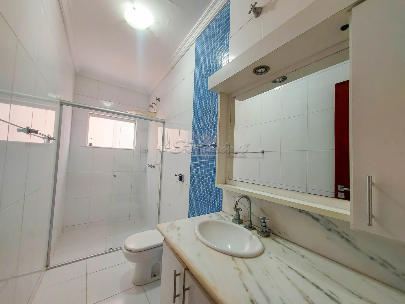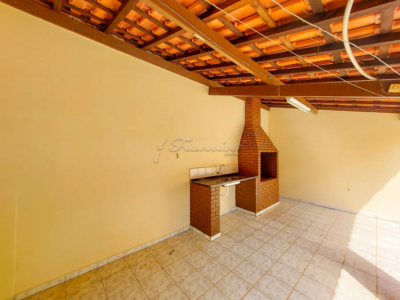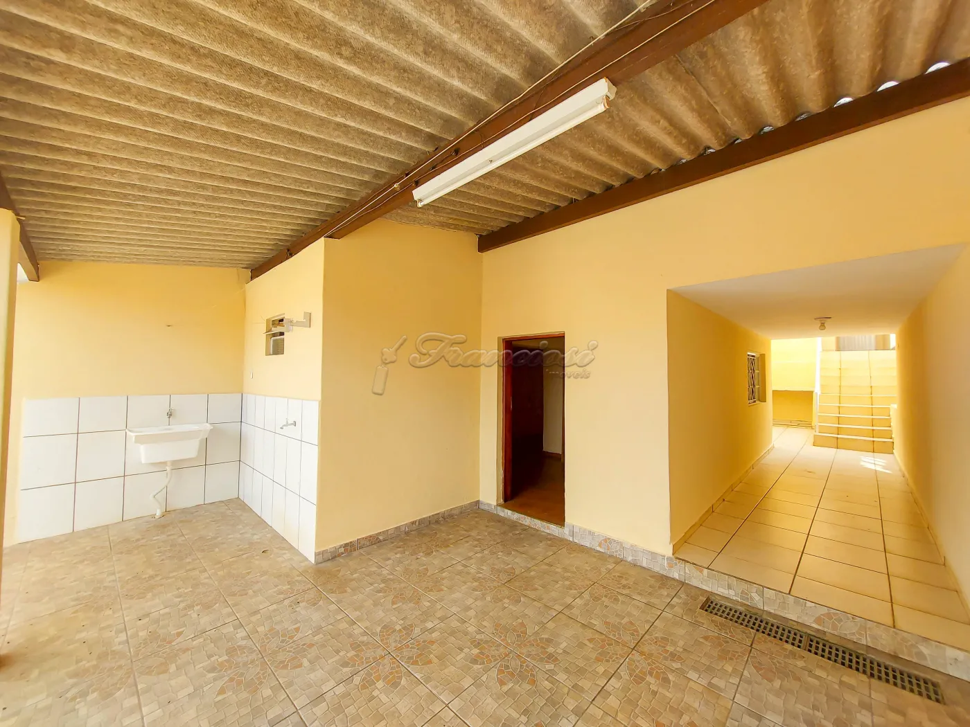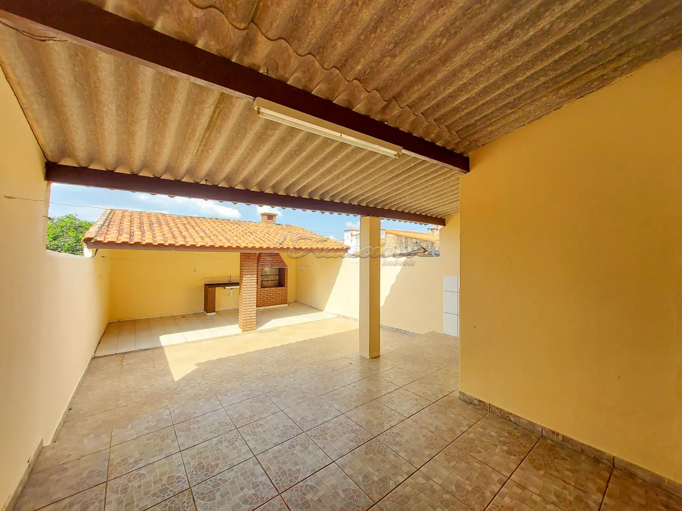 Casa com 3 dormitórios, sala 2 ambientes, cozinha, copa, 2 banheiros com box acrílico, área de serviço coberta, quintal cimentado e garagem coberta para 1 carro. Acabamento: laje, piso frio, taco e azulejo.