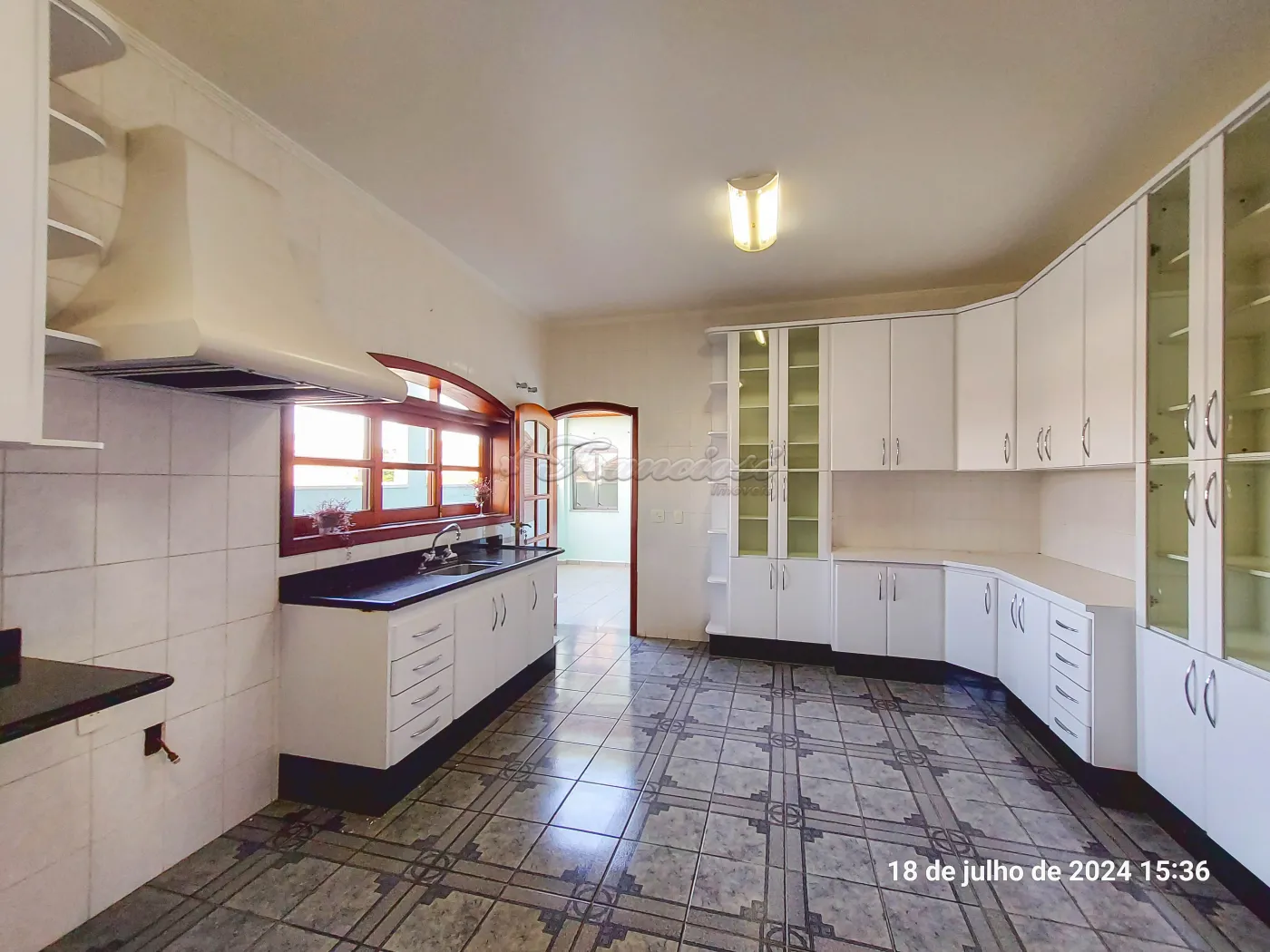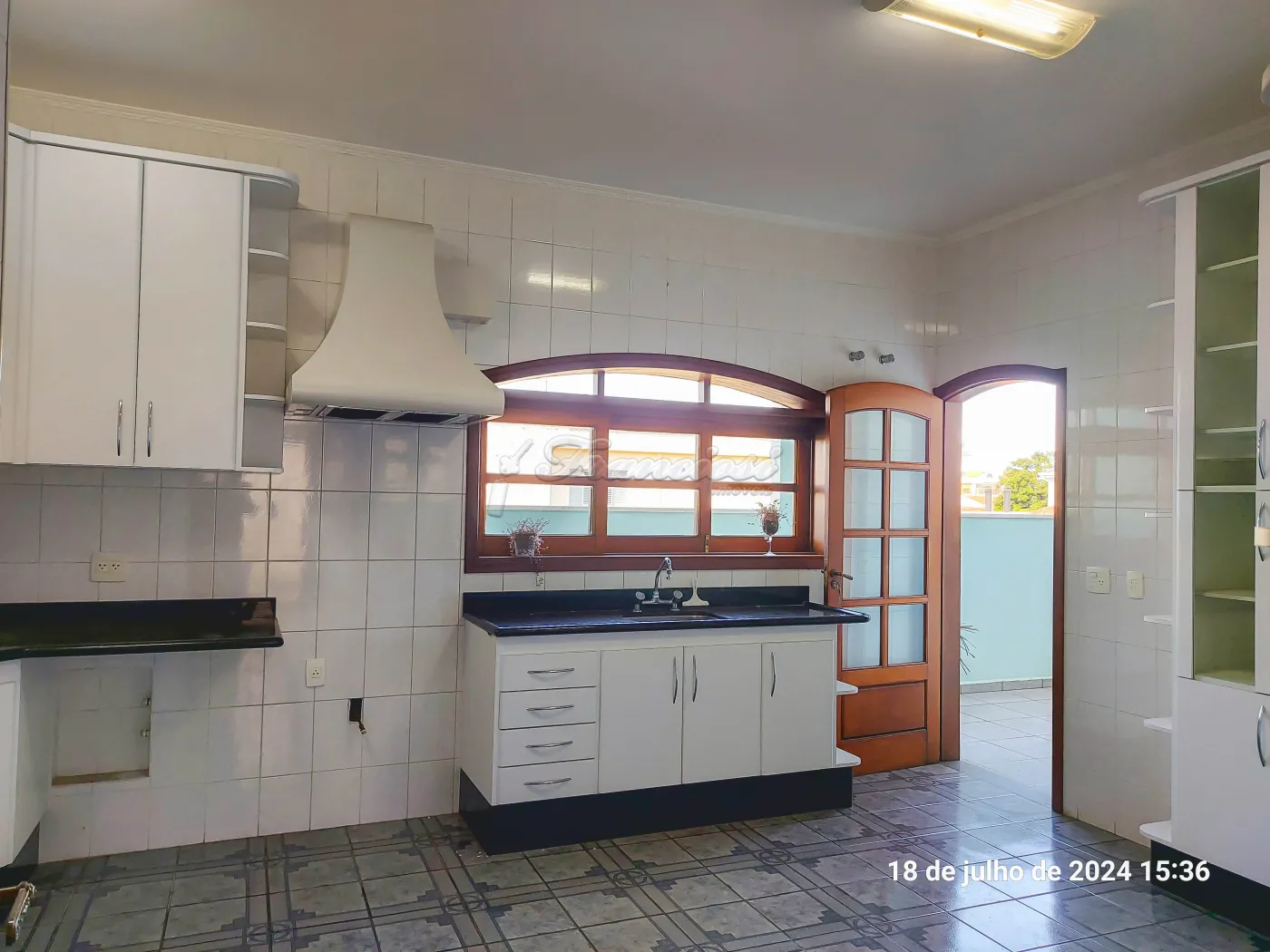 Sobrado com 5 suítes sendo 1 com closet, sacada, sala, sala de TV (piso superior), cozinha com armário planejado e cooktop, 2 despensas, lavanderia, churrasqueira, 1 banheiro externo, terraço, quintal grande com piso e garagem coberta para 5 carros (pequenos).