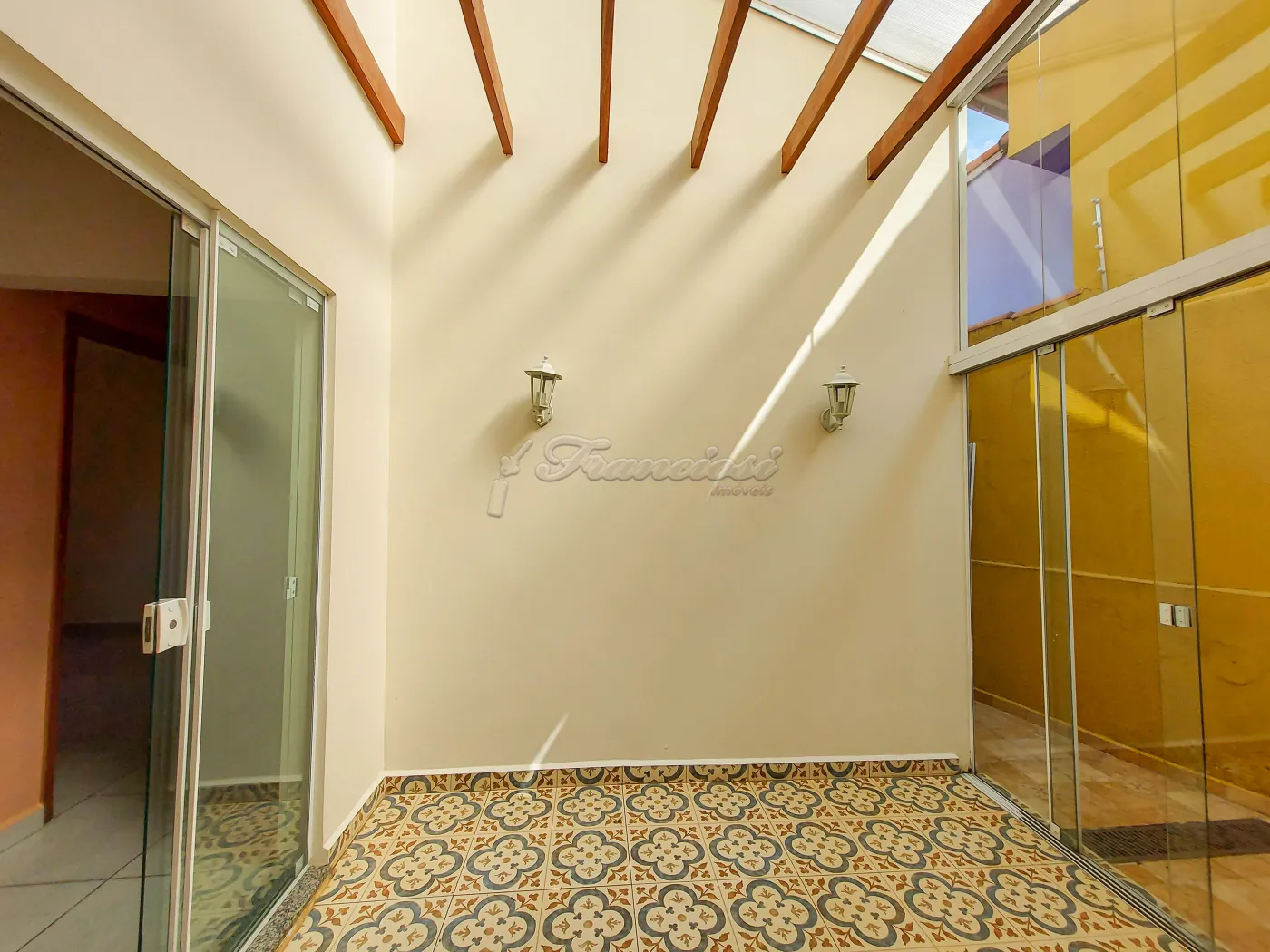 Casa com 3 dormitórios sendo 1 com armário embutido, sala de estar, cozinha, 2 banheiros sendo 1 com box acrílico, lavanderia, quintal, 1 cômodo externo, vaga de garagem para 3 carros. Acabamento: laje, piso frio e laminado.