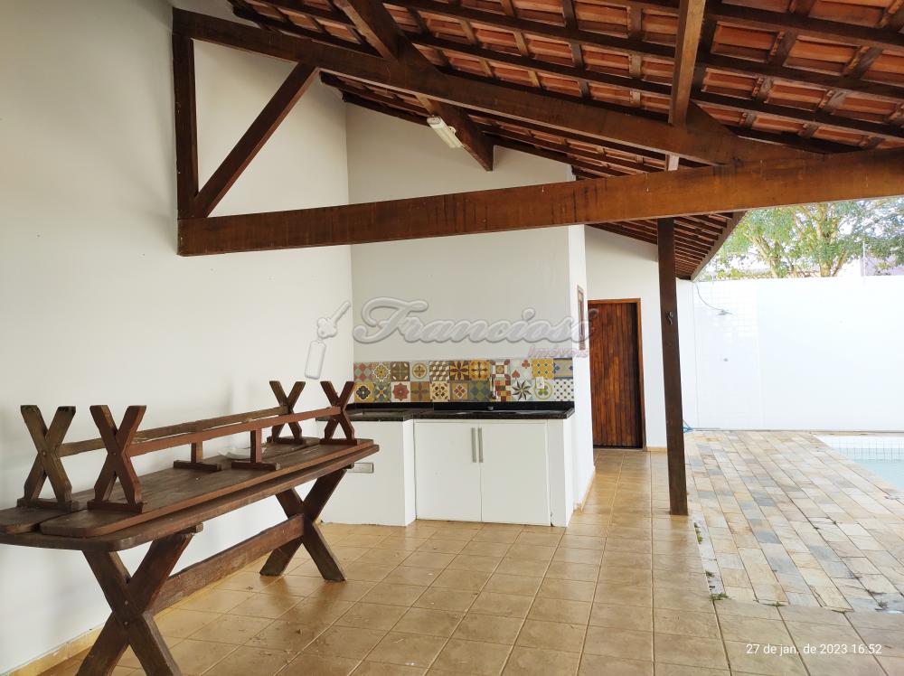 Chácara medindo 1.500 m², com piscina, pomar, área gourmet com banheiro externo. Casa avarandada com 3 dormitórios, sala 02 ambientes, cozinha, 1 banheiro social, área de serviço, garagem para varios carros. Acabamento: forro pvc e piso frio.