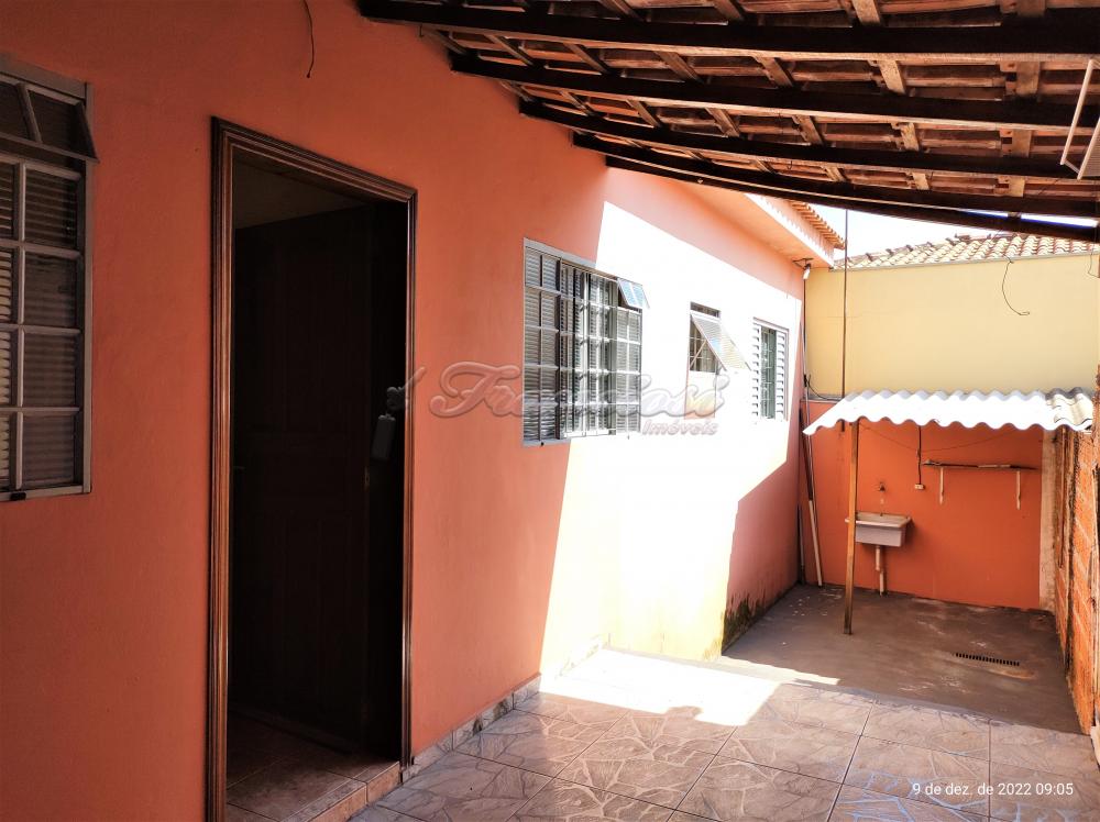 Casa com 2 dormitórios, sala de estar, cozinha, 1 banheiro social, área de serviço, quintal pequeno e garagem coberta para 1 carro. Acabamento: laje, taco (sinteco novo), piso frio, cozinha e banheiro azulejados até o teto.