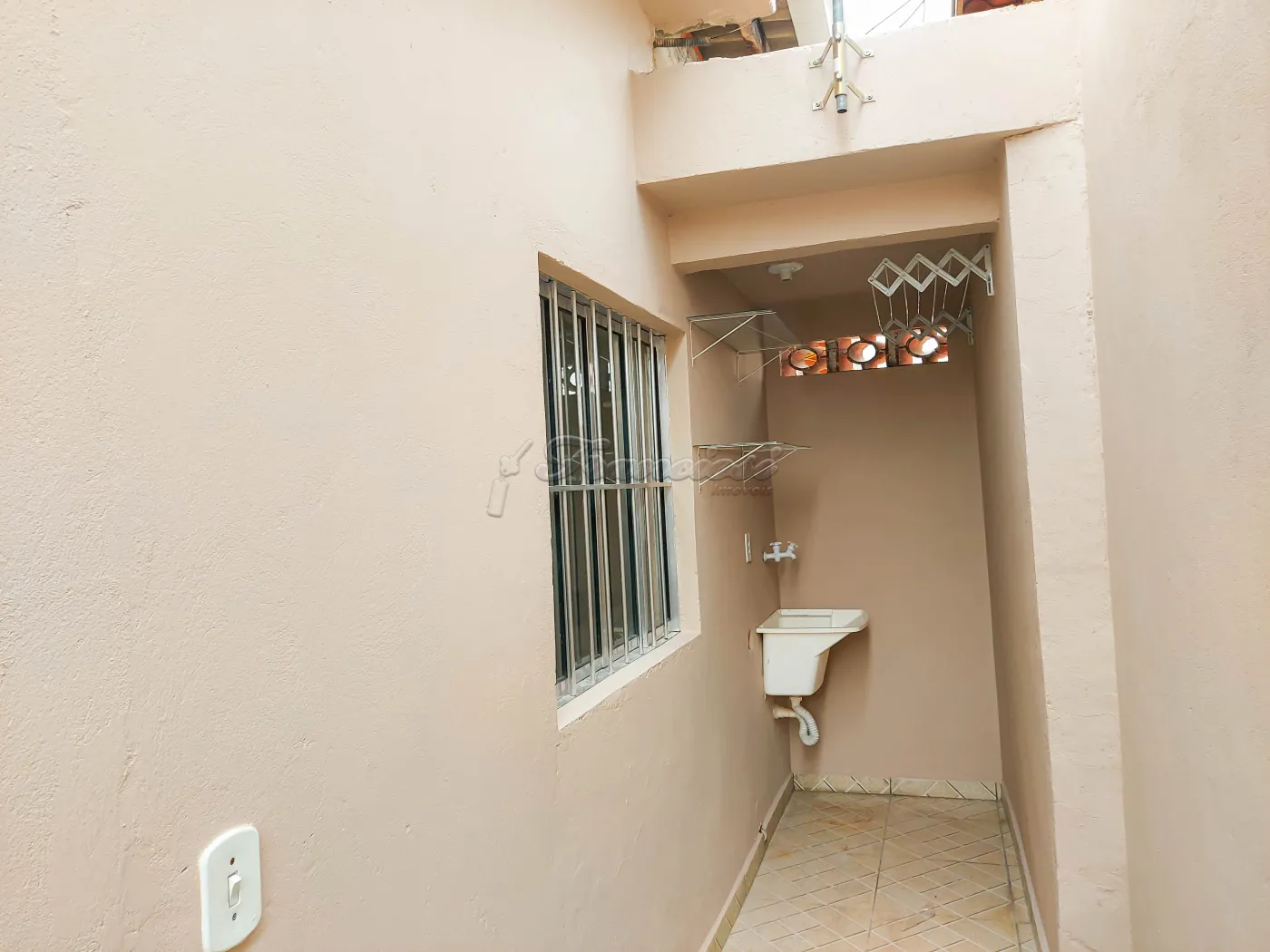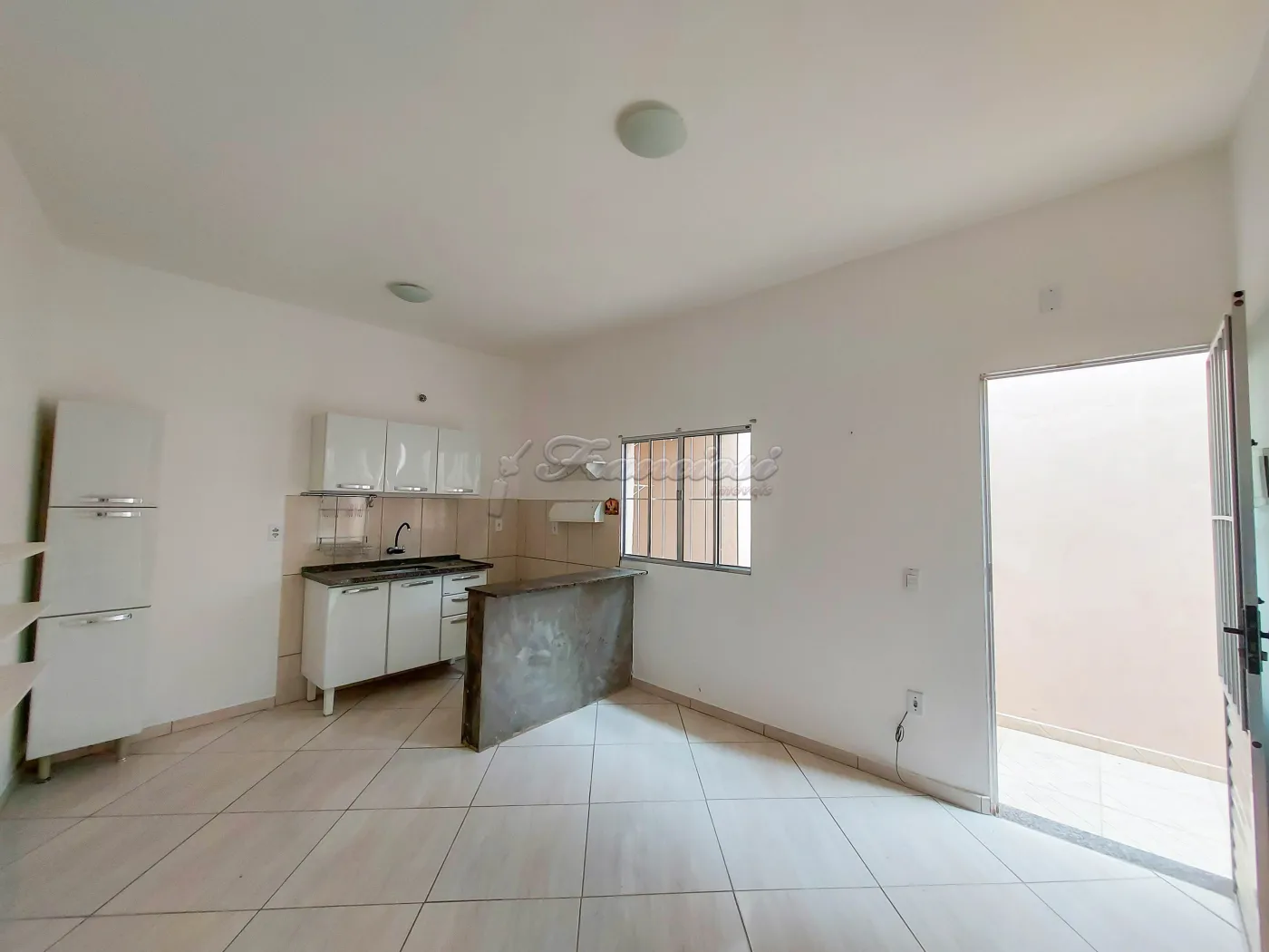 Casa de fundos com 1 dormitório, sala e cozinha conjugada, 1 banheiro social, área de serviço. Não tem garagem.