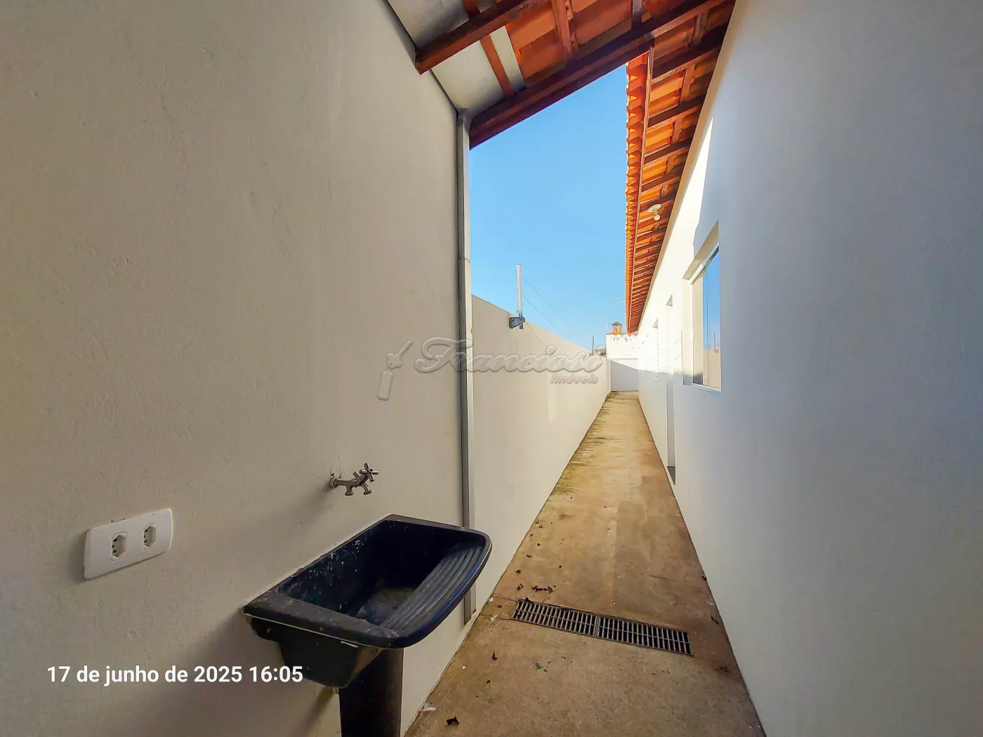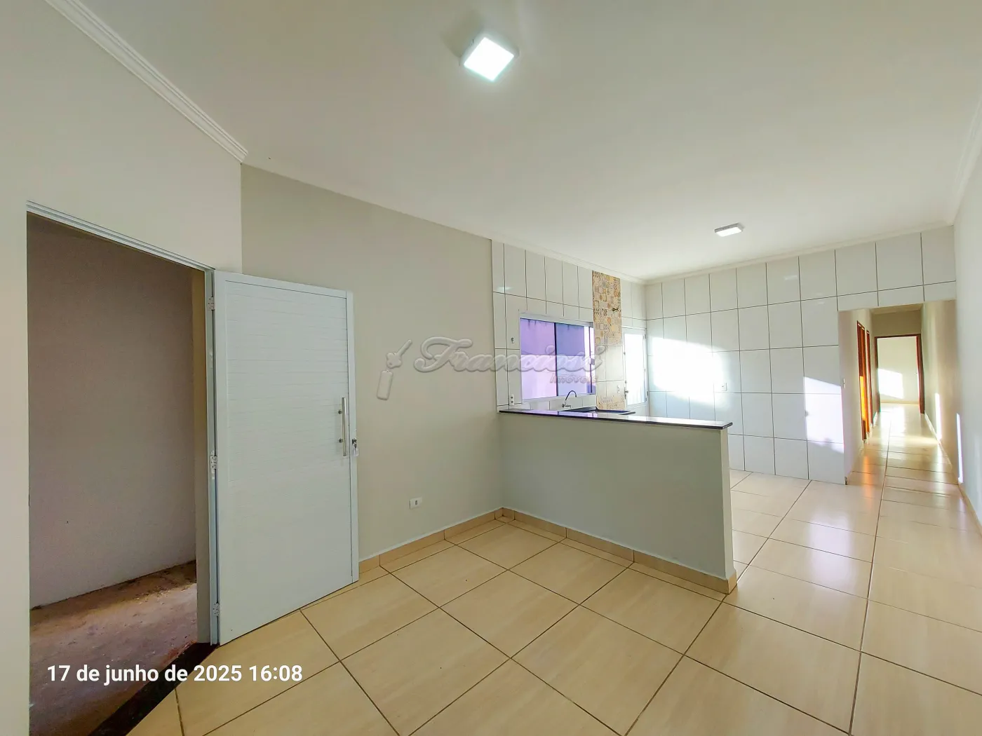 Casa com 2 dormitórios, sala de estar, cozinha, 1 banheiro social com box de acrílico, área de serviço coberta, quintal lateral e entrada para 1 carro. Acabamento: laje, piso frio, cozinha e banheiro azulejados até o teto.