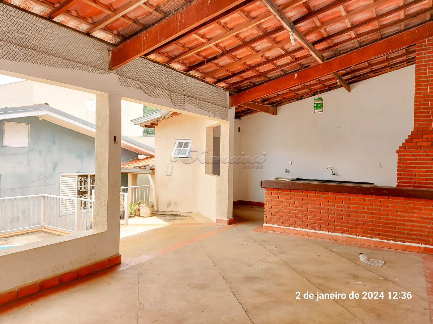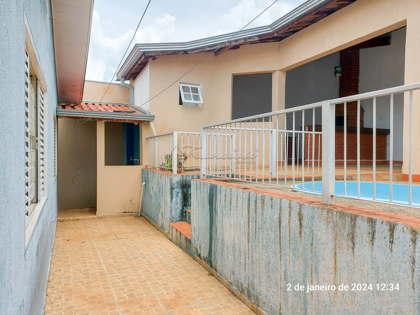 Casa com 2 dormitórios, sala de estar, cozinha com armário modulado, escritório, copa, 1 banheiro com box de blindex, área de serviço, quintal, área de lazer com churrasqueira e 1 banheiro, piscina de fibra com 5.000 litros, canil, garagem coberta para 1 carro e entrada para mais carros.