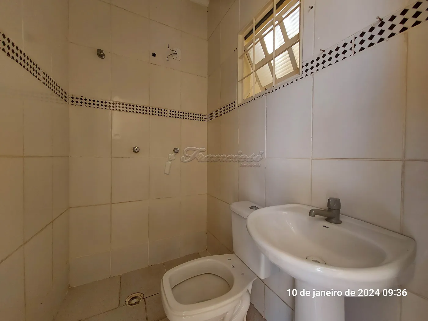 Acabamento: laje, piso frio e azulejo até o teto.