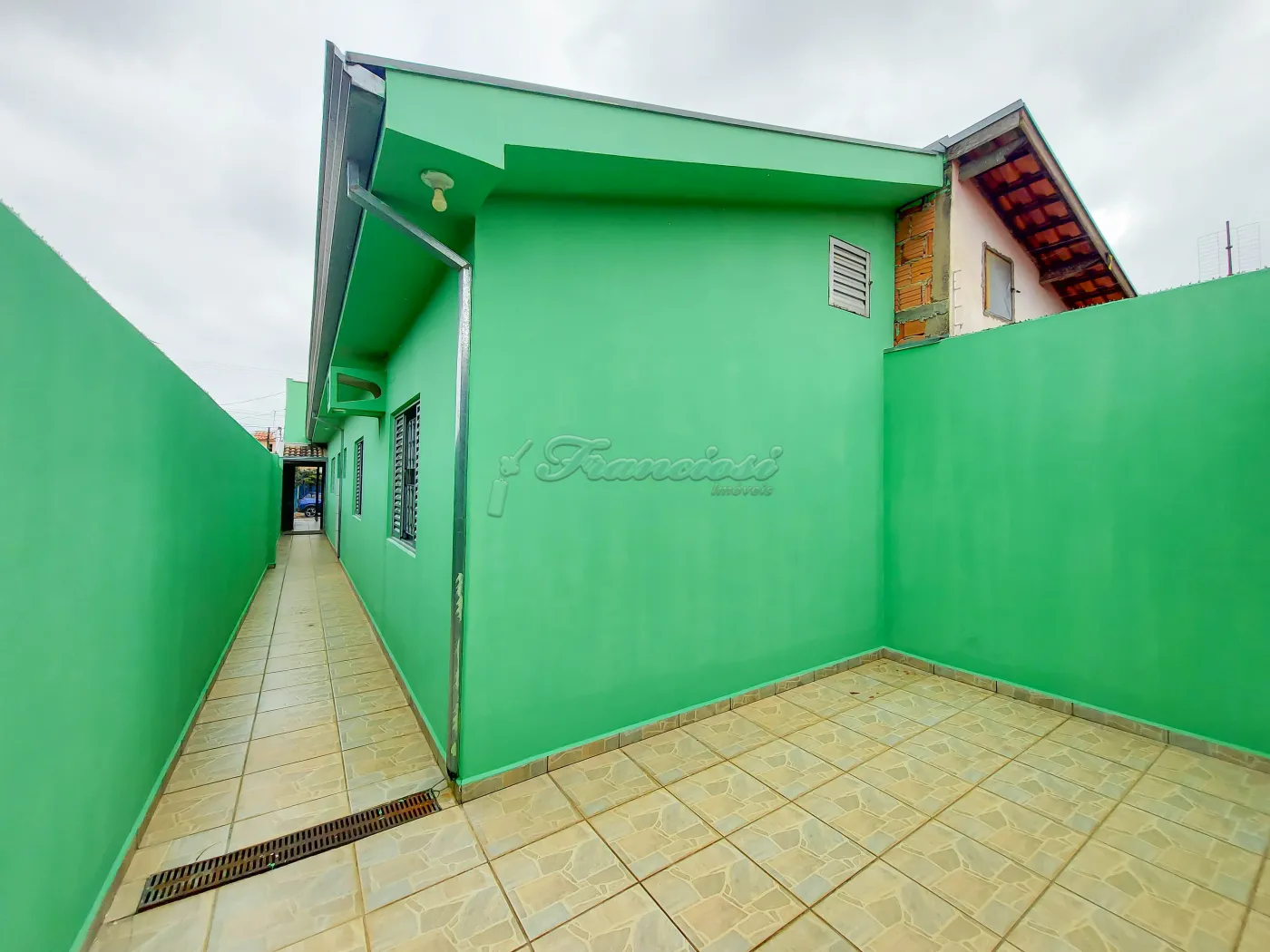 Casa com 2 dormitórios, sala de estar, cozinha, 1 banheiro social com box acrílico, área de serviço coberta, quintal, churrasqueira, 1 cômodo externo e garagem coberta para 2 carros pequenos.