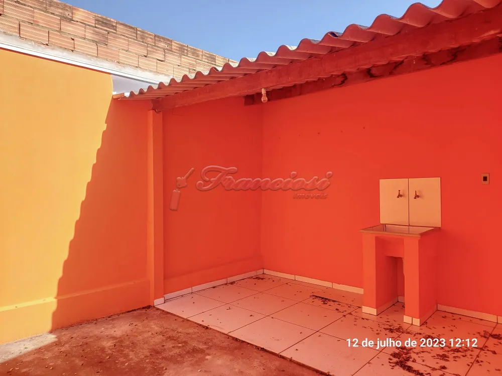 Casa com 3 dormitórios, sala de estar, cozinha, 1 banheiro social, despensa, área de serviço, quintal pequeno cimentado e garagem coberta para 1 carro. Acabamento: forro, taco, piso frio, cozinha e banheiro azulejados pela metade.